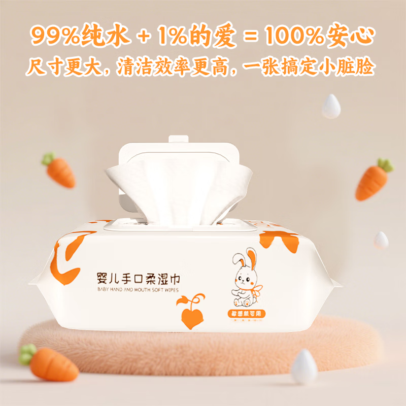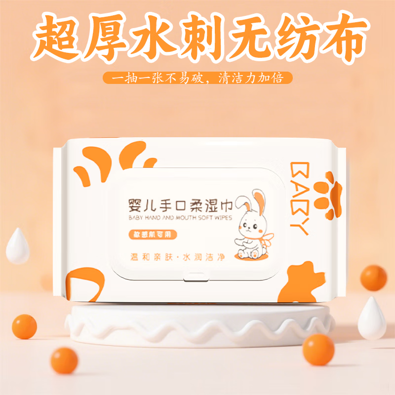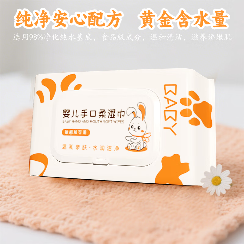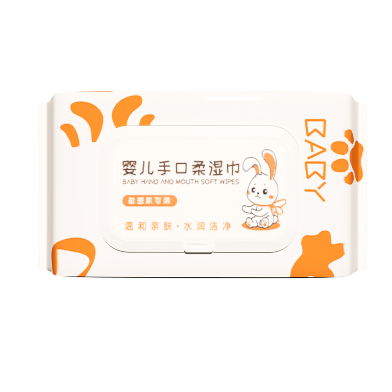 婴儿手口湿巾家庭旅行宝宝清洁湿纸巾儿童专用大包80抽 大白兔图婴儿手口湿巾一包装