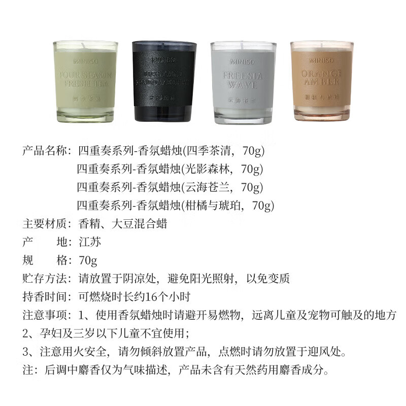 名创优品(MINISO)四重奏系列香氛蜡烛柑橘与琥珀70g室内香薰居家礼物