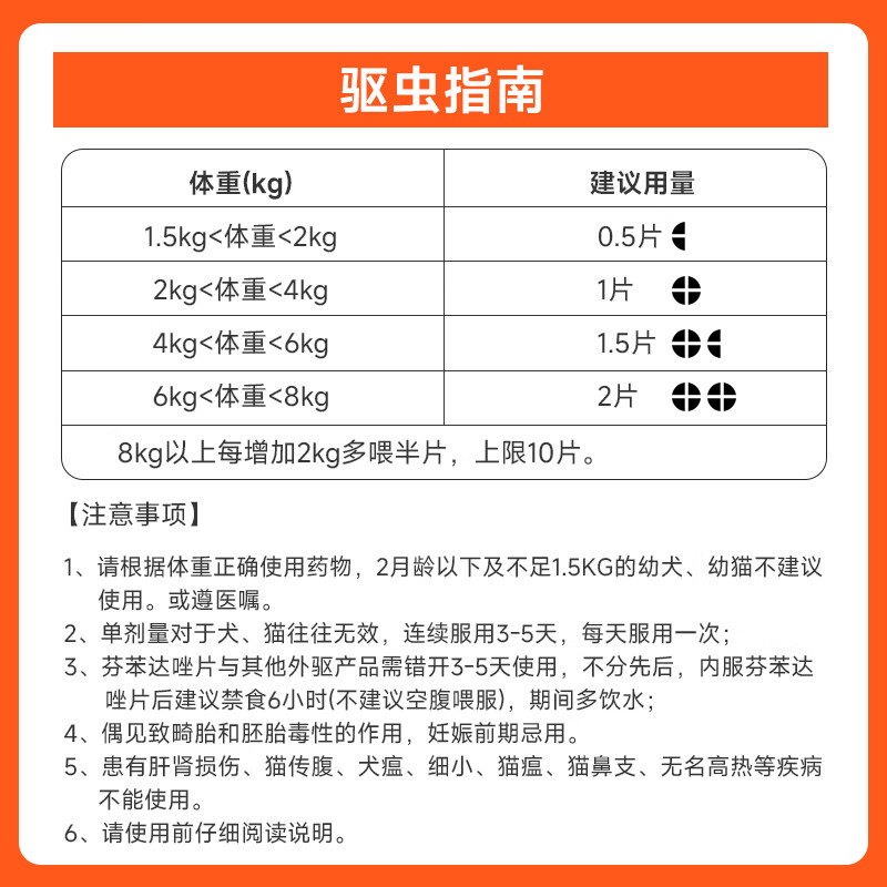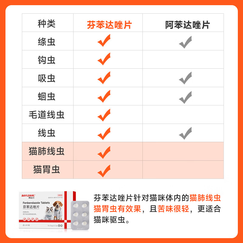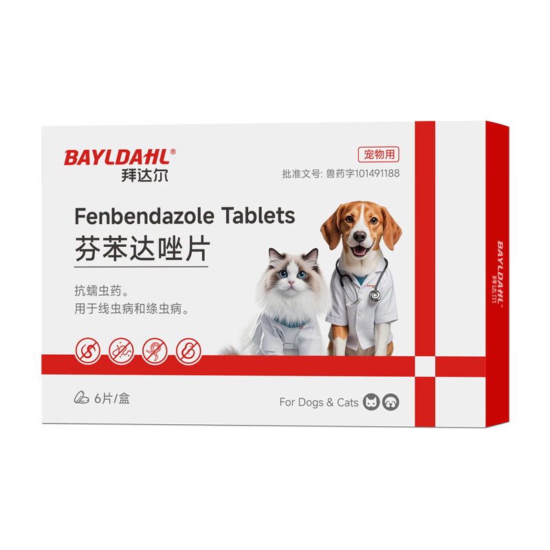 拜达尔猫咪狗狗驱虫药体内驱虫宠物蠕虫线虫绦虫打虫药芬苯达唑片1盒6片