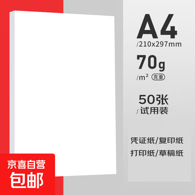 【京东物流】A4复印纸打印纸70g空白凭证A4白纸草稿纸画画纸双面便宜办公打印纸 A4复印纸50张
