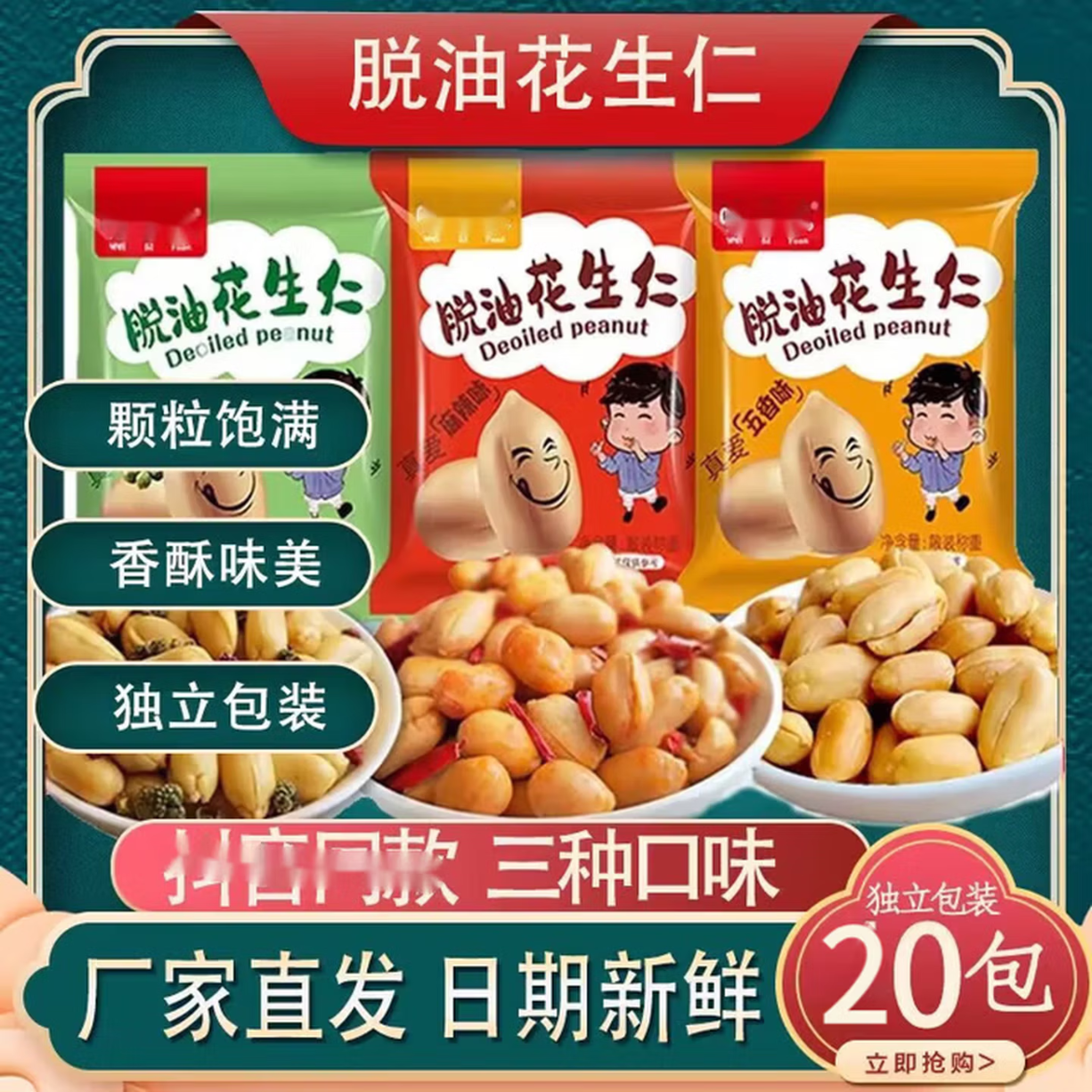 脱油五香味花椒花生独立小包装去皮花生米零食坚果 20包
