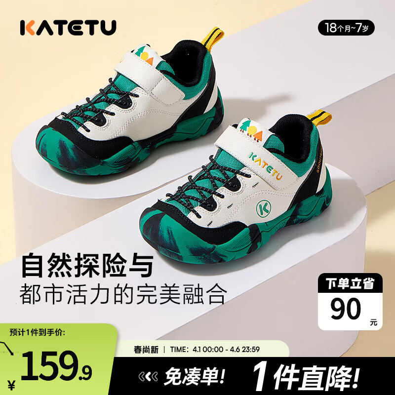 卡特兔童鞋儿童运动鞋春季户外儿童鞋子男童女童软底儿童鞋登山鞋 白黑绿 26 内长16.0cm 脚长14.8-15.4