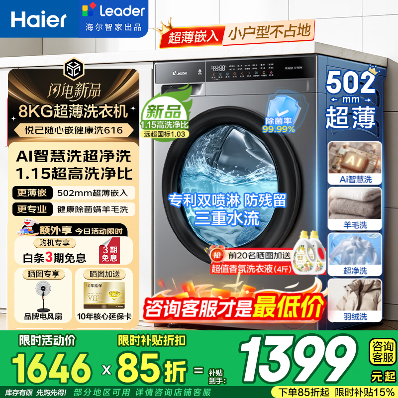 海尔洗烘套装旗舰店手机扫码,领券购买