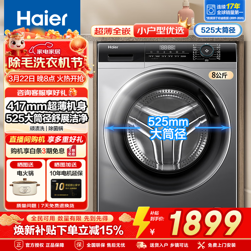 海尔洗衣机旗舰店手机扫码,领券购买