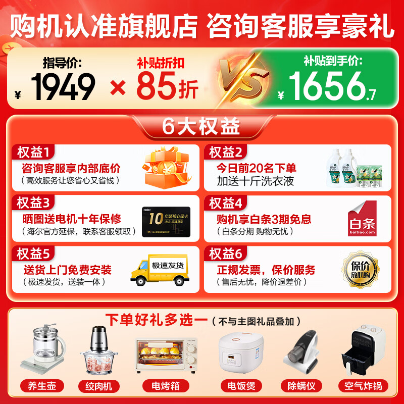 海尔洗嵌套装旗舰店手机扫码,领券购买