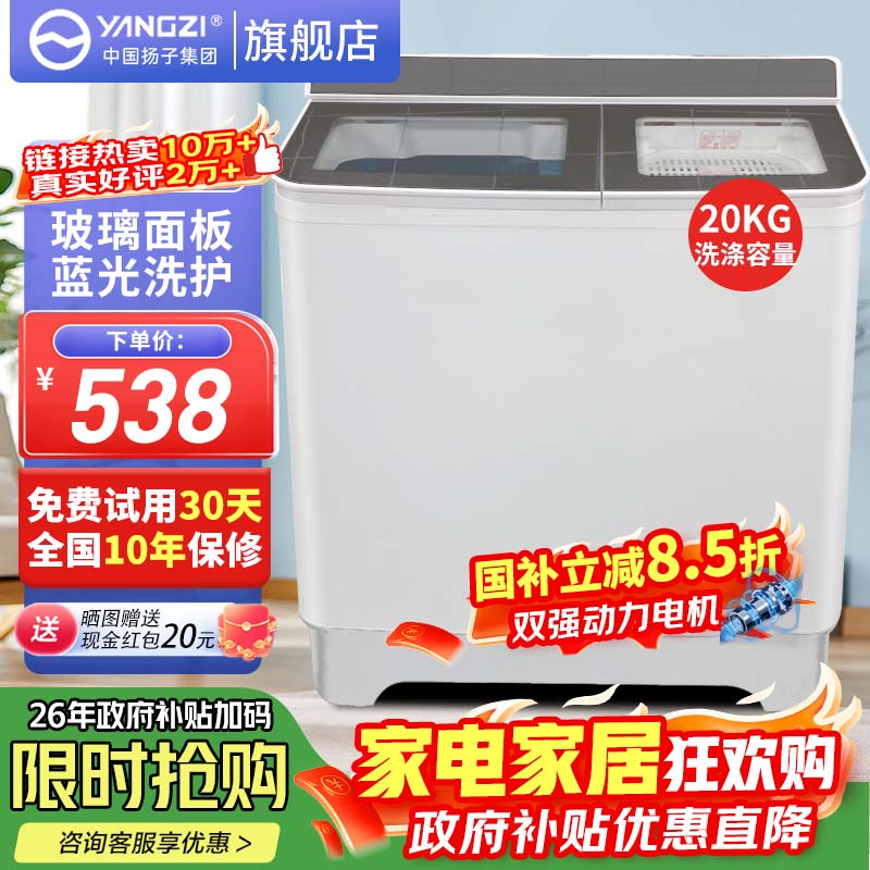 YANGZI半自动洗衣机旗舰店手机扫码,领券购买