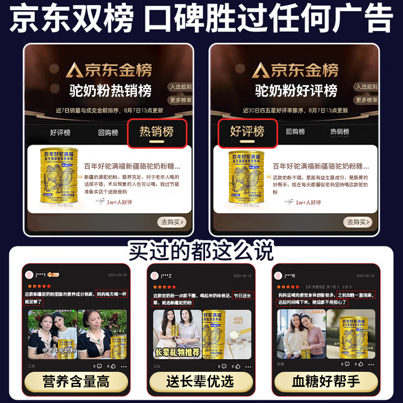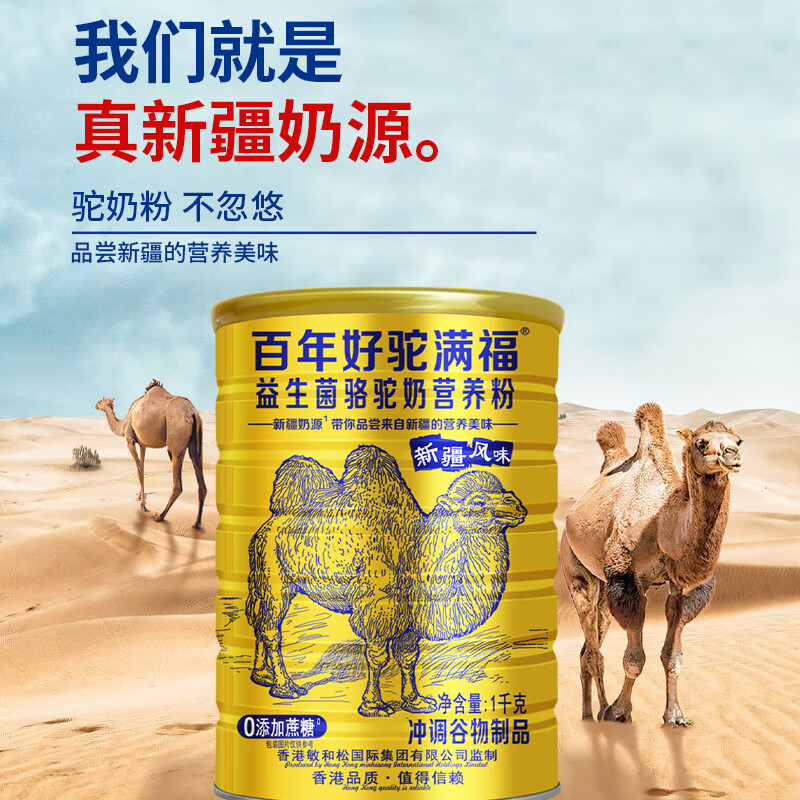 百年好驼满福新疆无蔗糖骆驼奶粉糖尿益生菌中老年人可用食品骆驼奶乳营养粉 罐装1000g1罐【体验装】+1杯子