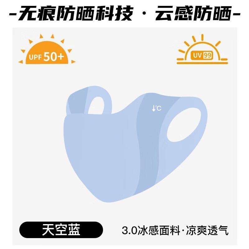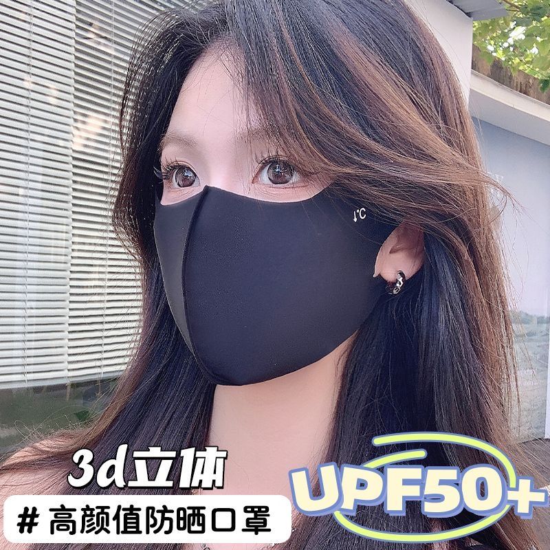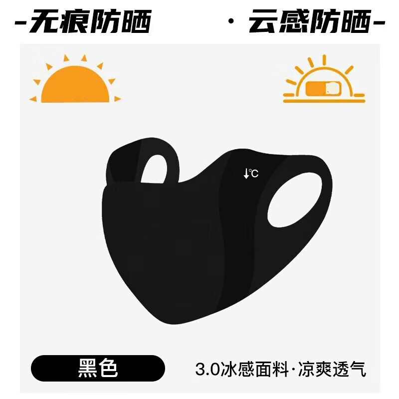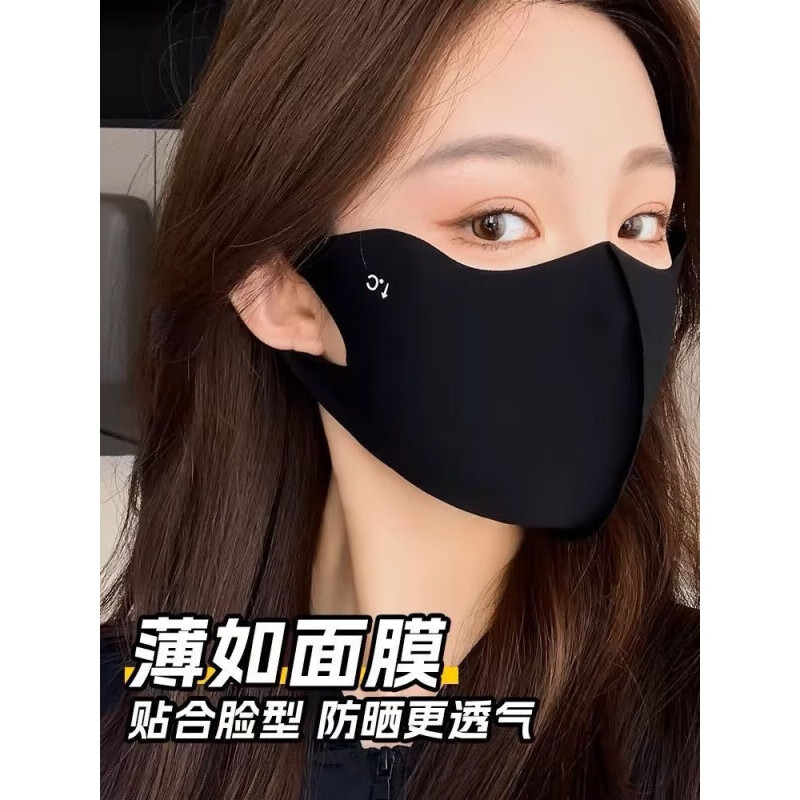 无痕防晒口罩男女夏季护眼角防晒面罩户外防尘透气冰丝面纱遮全脸薄款男口罩防晒防紫外线UPF50+ 【黑色两只随机送1】3片升级款无痕防晒口罩