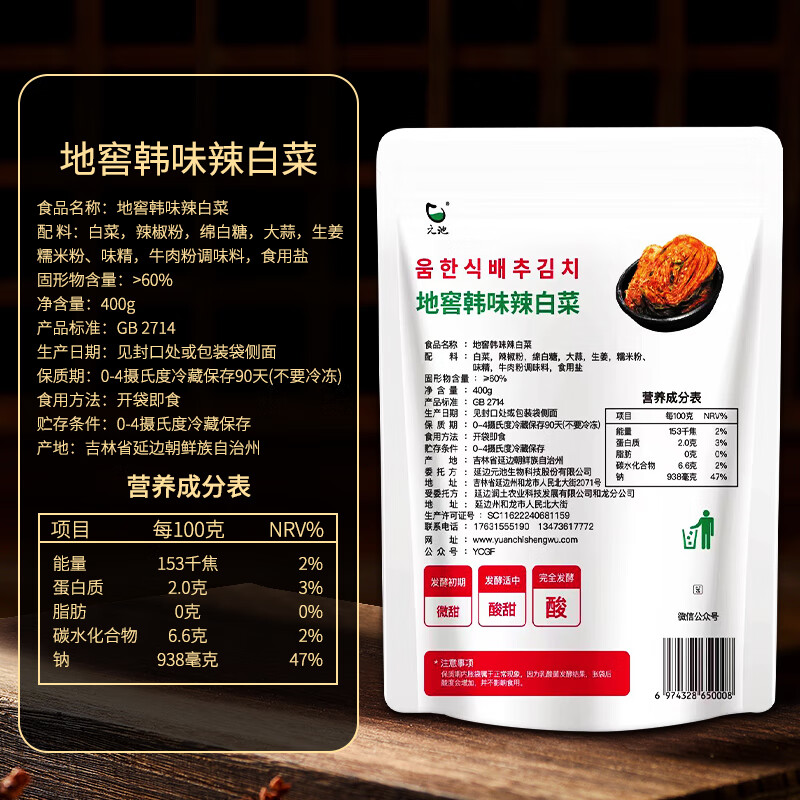 元池地窖韩味辣白菜400g/袋辣白菜韩式泡菜下饭菜咸菜延边朝鲜族特产 1袋装