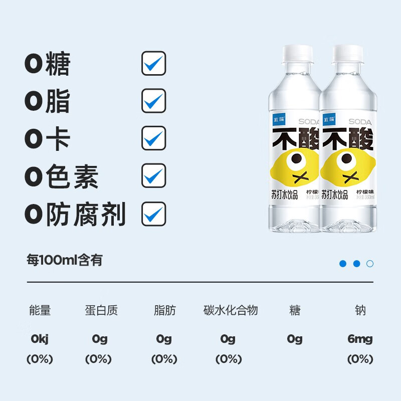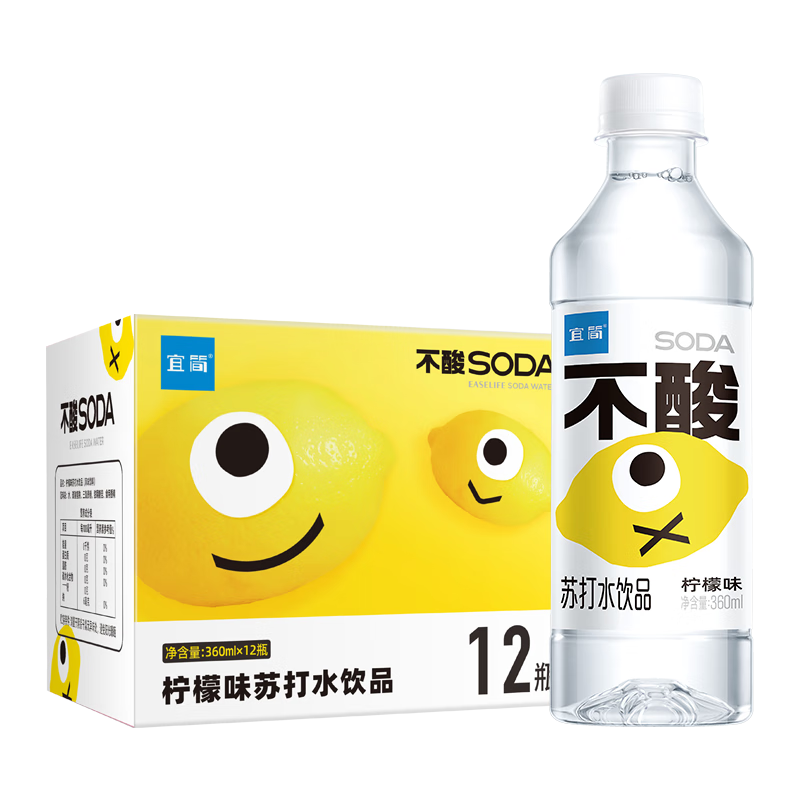 宜简苏打水柠檬味果味无汽无糖饮料0糖0脂0卡柠檬水整箱 360ml*12瓶