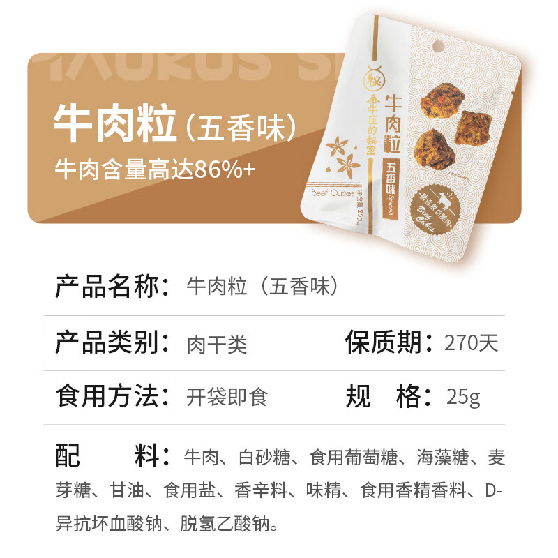 金牛座的秘密 原切牛肉粒五香味25g 办公室休闲零食 肉干肉铺