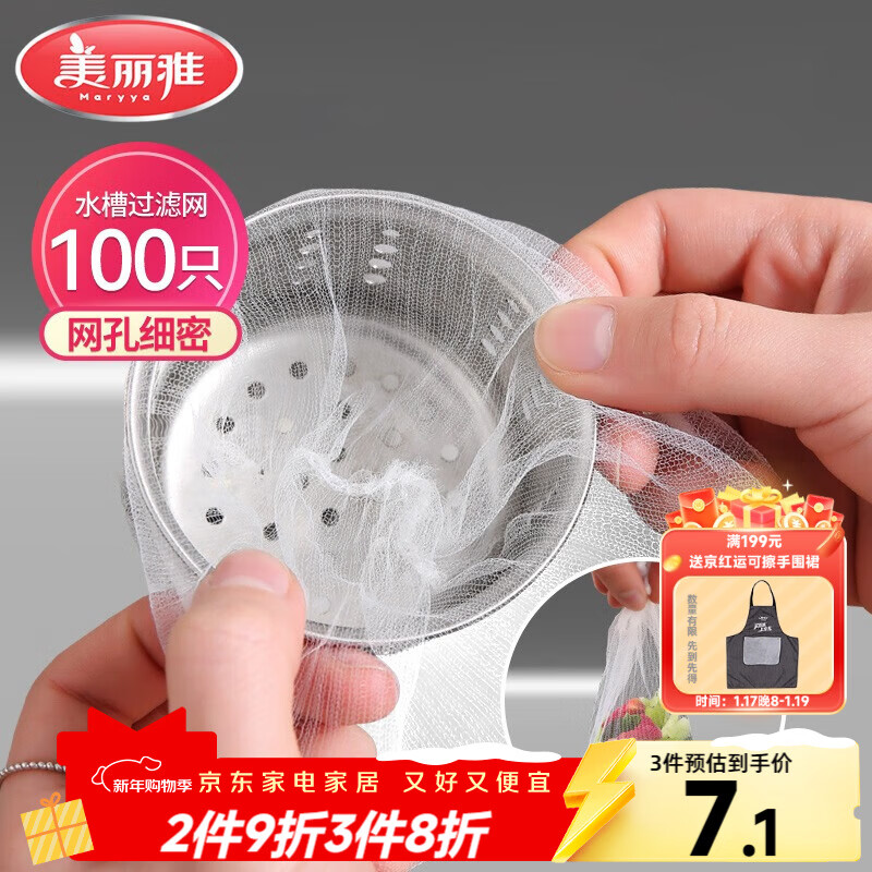 美丽雅水槽过滤网100只一次性 厨房下水道水池地漏筛网