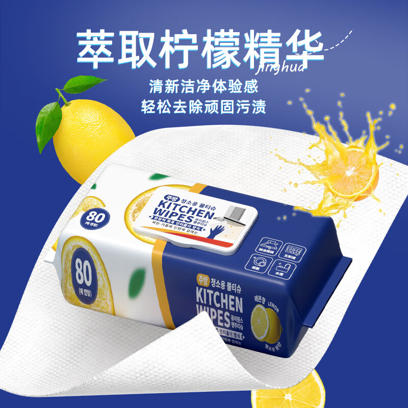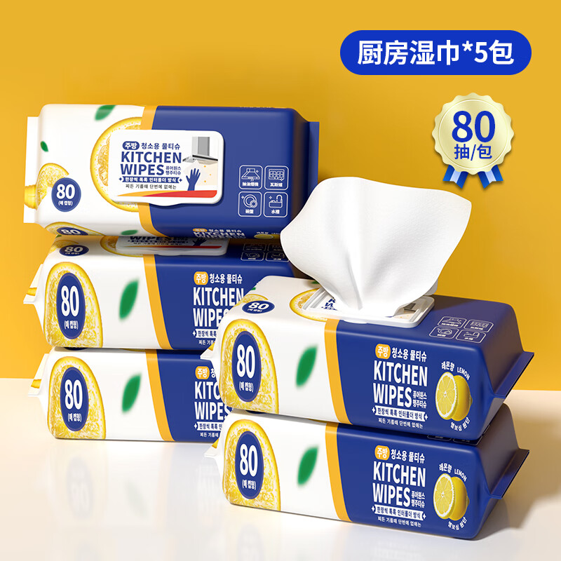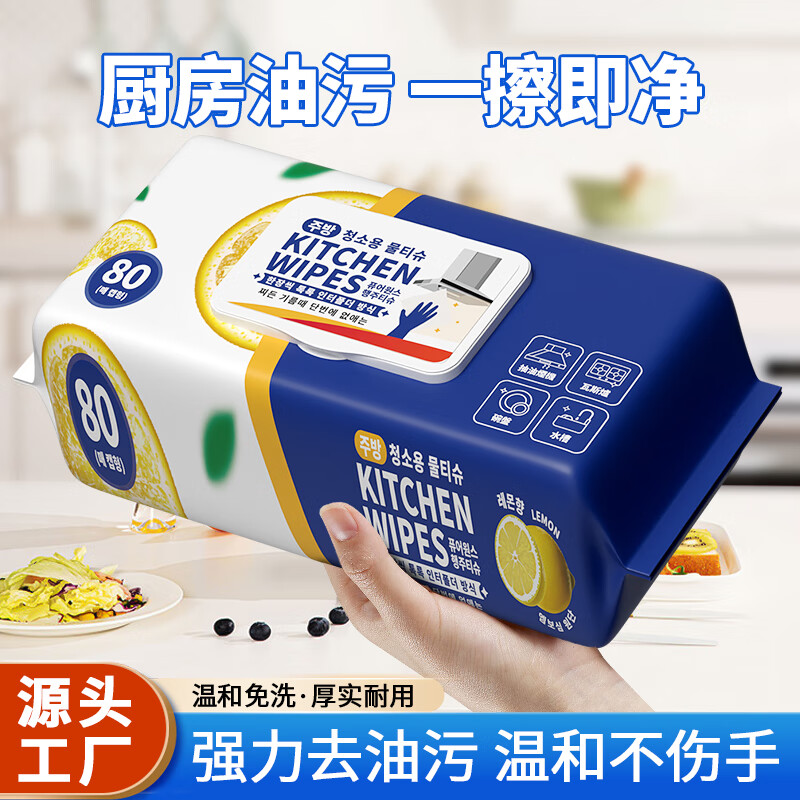 简禾厨房用清洁湿纸巾一次性去油污抹布加大加厚可水洗懒人抹布80抽 【80抽x3包】1箱(19cm*20cm)韩