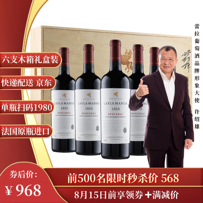 蕾拉【法国LAYLA MANOR】进口AOP级14度干红葡萄酒木箱礼盒750mlX6瓶