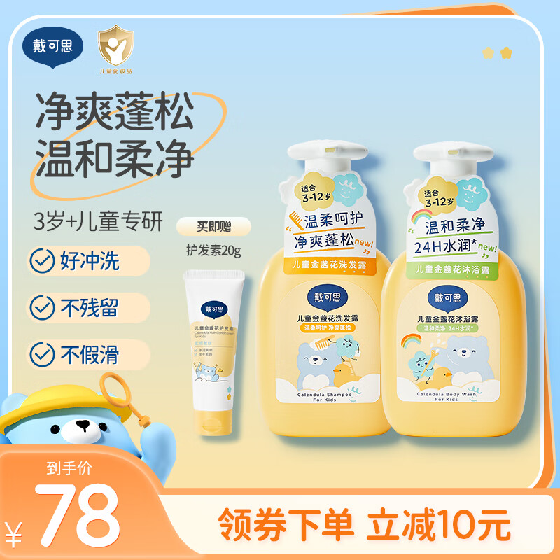 戴·可·思(Dexter)戴可思儿童洗发水儿专用女3-15大童宝宝洗发露男氨基酸顺滑洗头膏 洗发水300ml+沐浴露300ml
