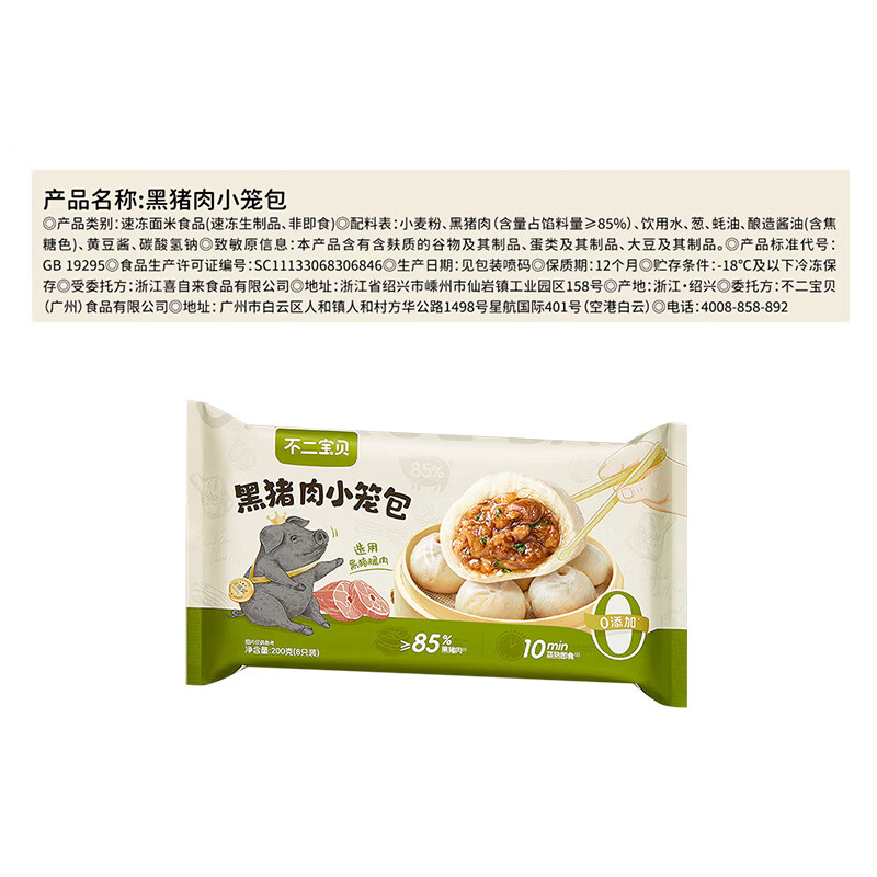 不二宝贝嵊州小笼包子儿童早餐加热速冷冻半成即食蒸品老面点馒头 【100%黑猪肉】儿童小笼包*2盒