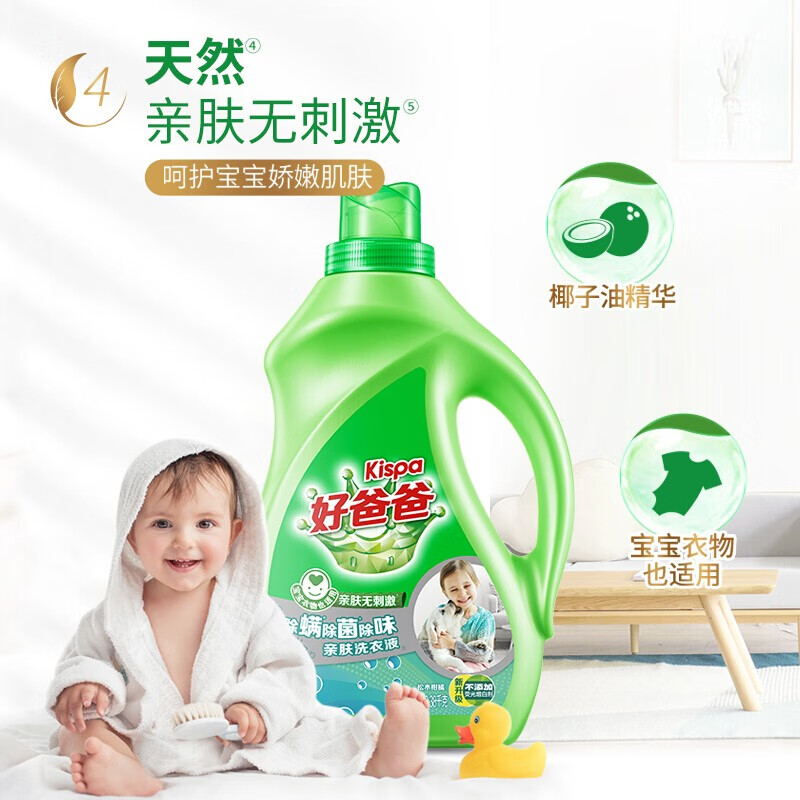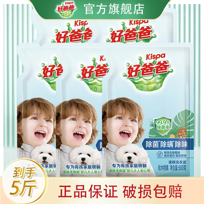 好爸爸(Kispa)除螨除菌除味洗衣液内衣机洗手洗低泡洗衣服液持久留香套装替换装 【5斤除菌除螨除味】500g*5