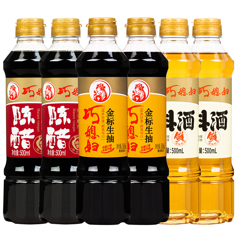 巧媳妇 金标生抽烹调料酒陈醋炒菜凉拌卤炖家用调味品调味料组合 生抽料酒陈醋500ml*6瓶