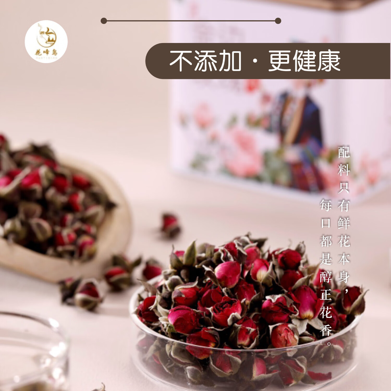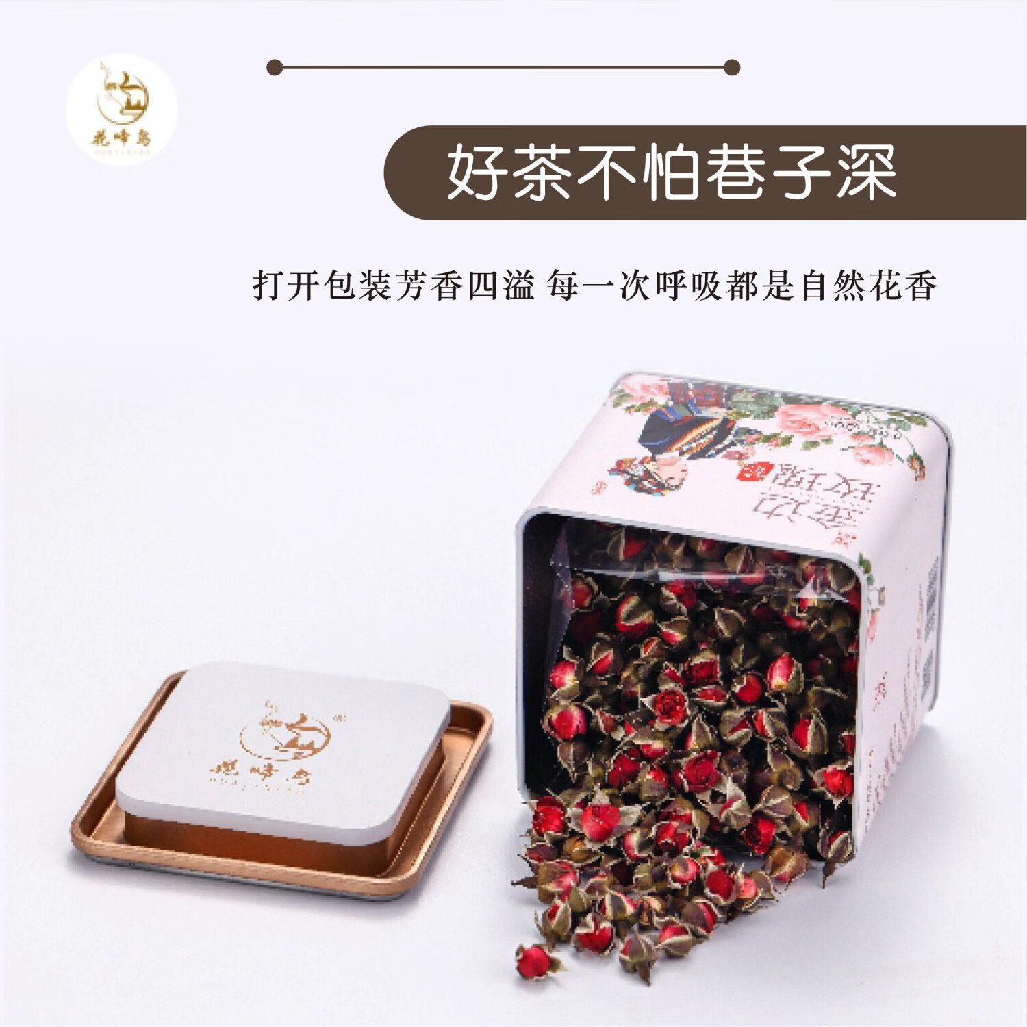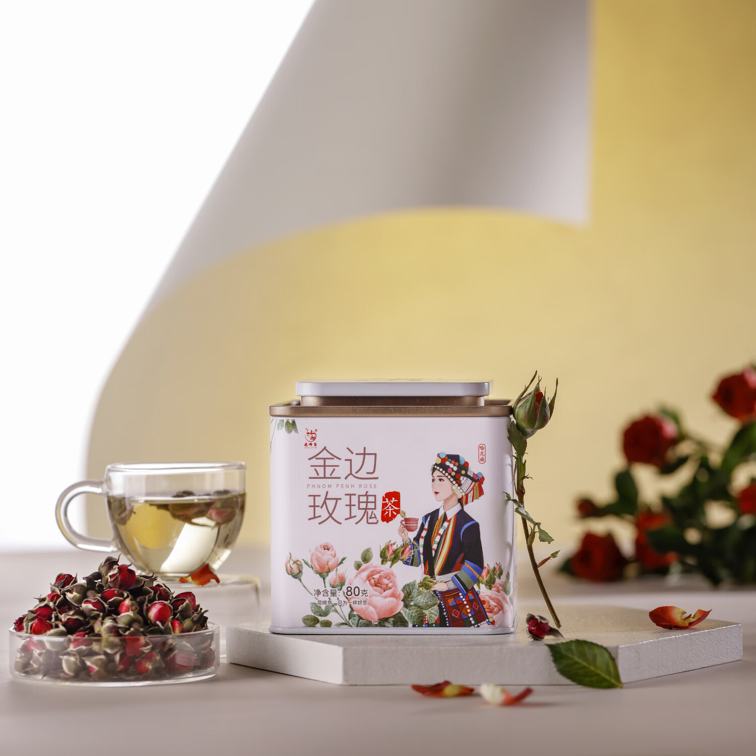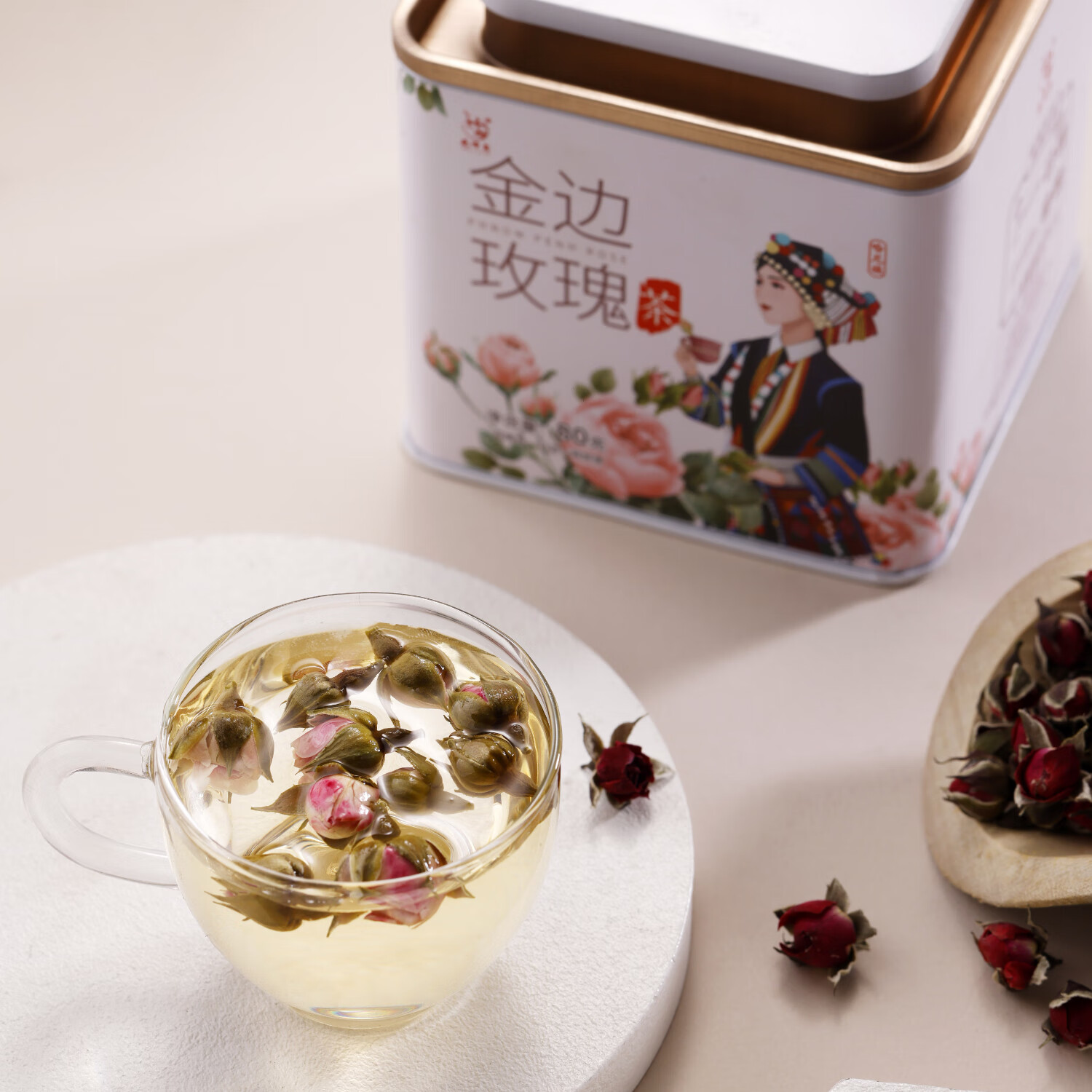 花啼鸟民族系列 特级云南养生花茶 无硫熏大朵菊花重瓣干玫瑰花茶礼盒装 【特级金边玫瑰】80g/罐