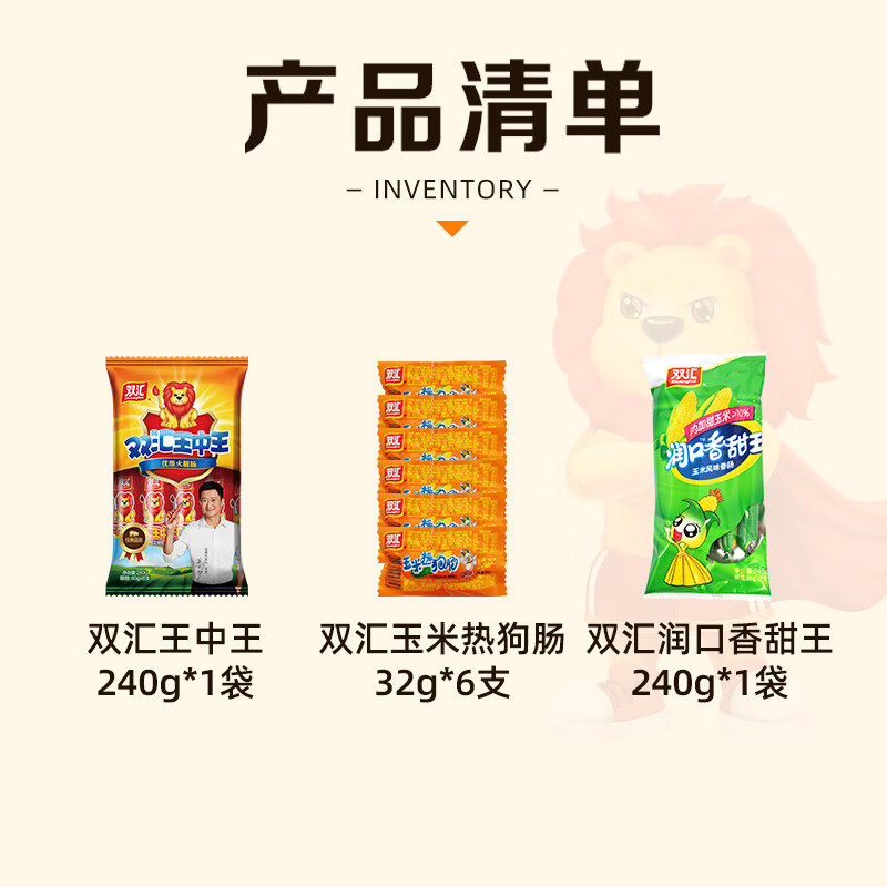 双汇(Shuanghui)【组合】王中王火腿肠240g+润口玉米肠240g+玉米热狗肠192g 火腿肠组合装3大包