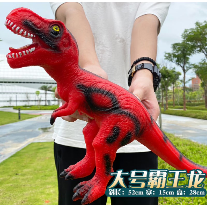 超大号仿真软胶恐龙玩具发声动物模型霸王龙三角龙男孩儿童礼物的 随机恐龙22cm捏捏叫