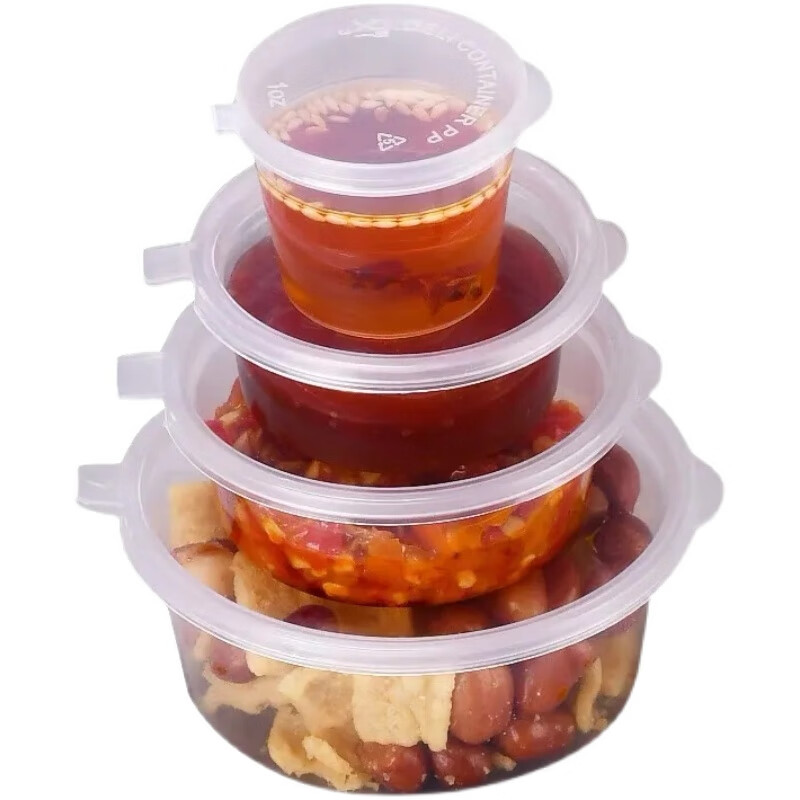 亚咖一次性酱料盒调料盒带盖汤碗连体辣椒油蘸料杯冷冻打包盒分装神的 小号分装盒50个装
