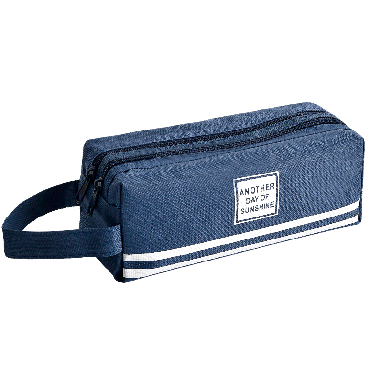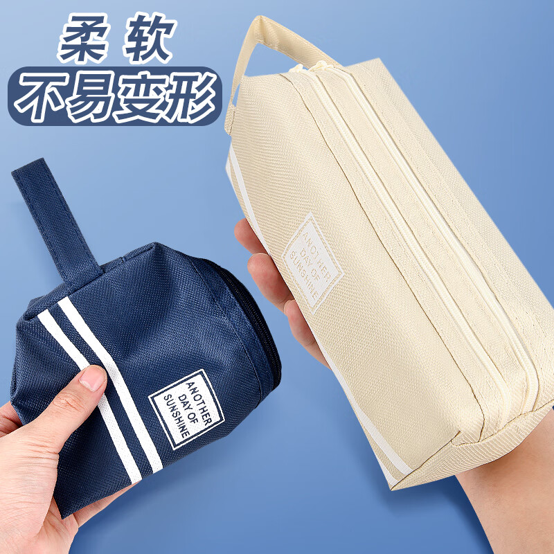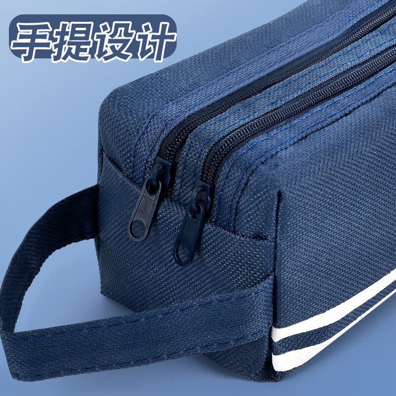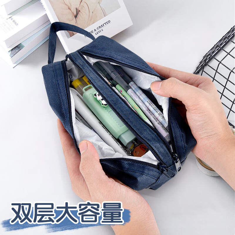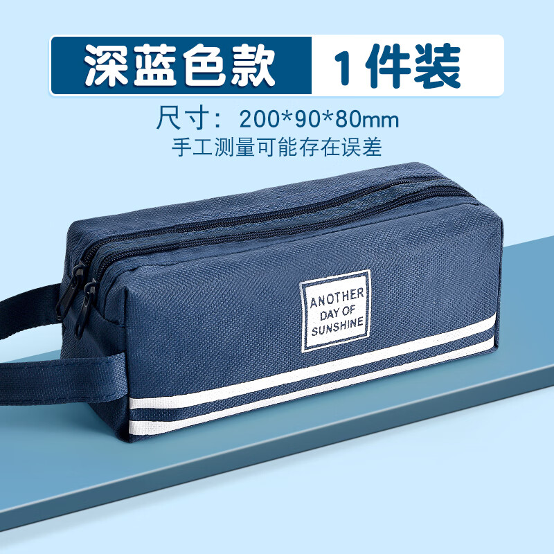 儿童笔袋小学生简约铅笔盒ins日系大容量文具袋五六年级男孩款铅笔袋手提式铅笔包双层收纳学习文具用品的 深蓝色款-1件装 无规格