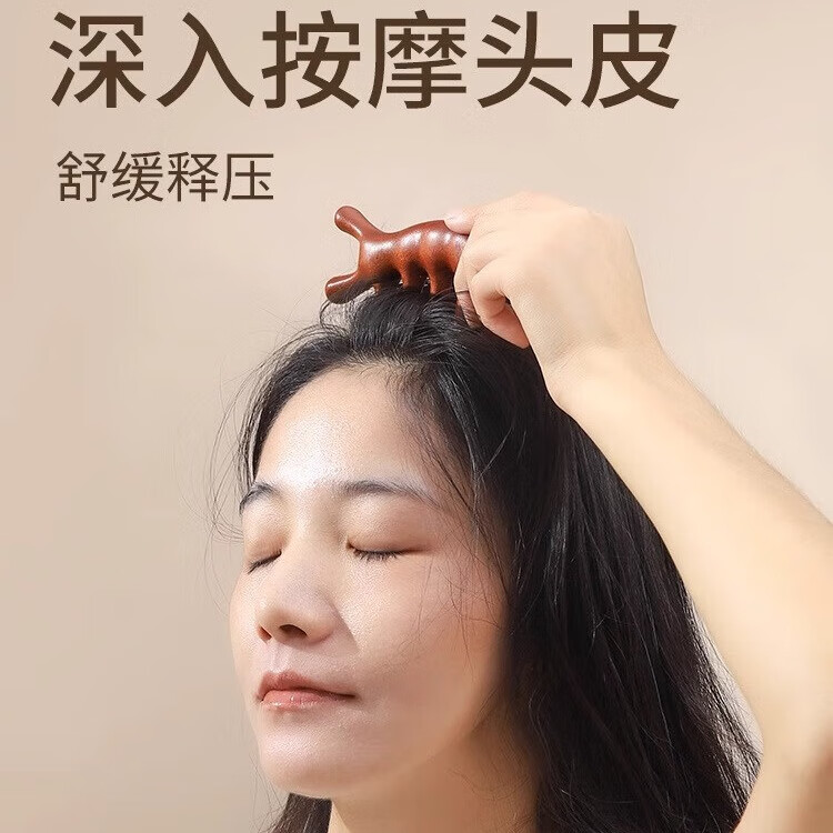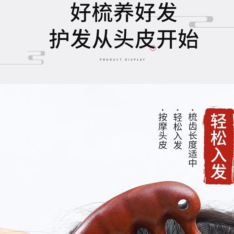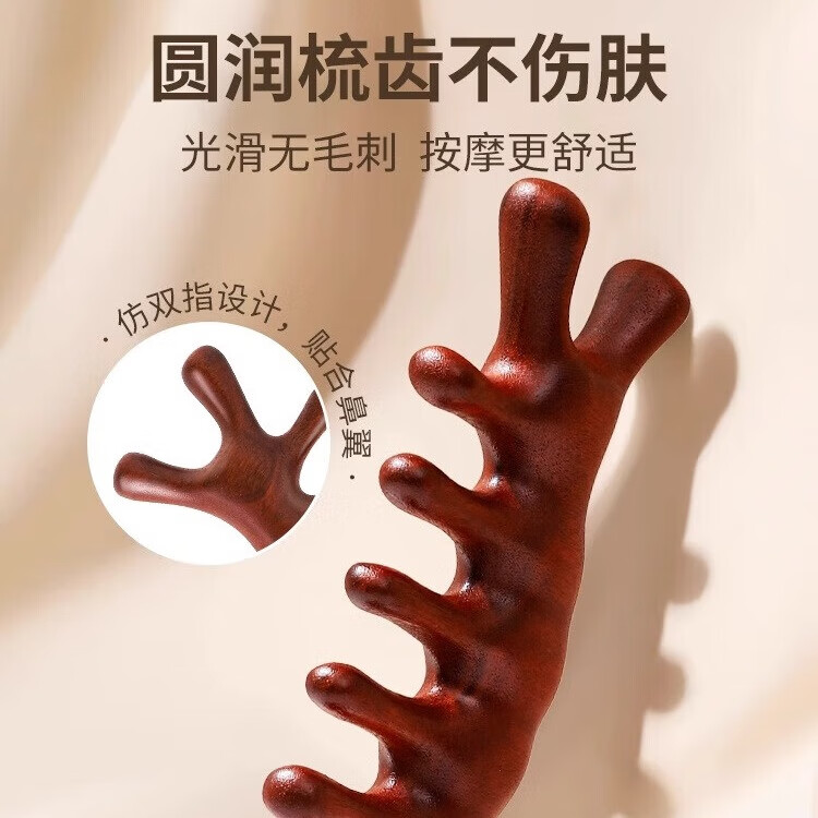 按摩梳木头纹理经络梳子头疗按摩男女刮痧头皮疏通防宽齿刷脱发 陀象1个装+经络图