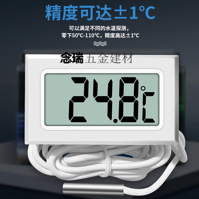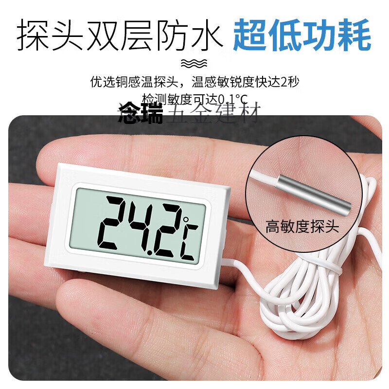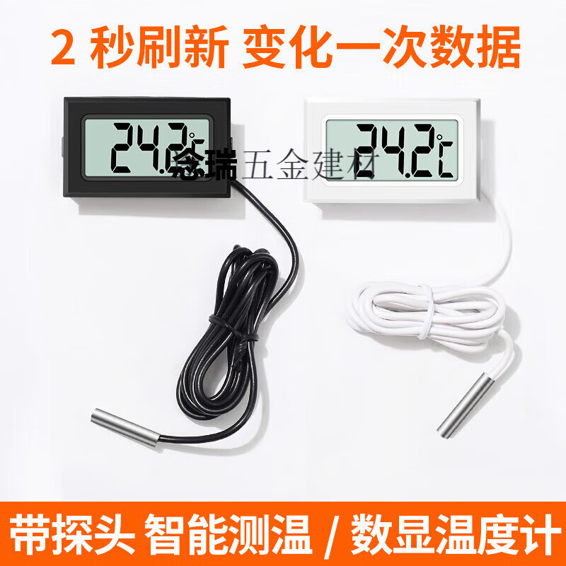 梦茜儿艾风格带探头数显温度计高精度鱼缸养殖专用电子温度传感器冰箱的 2秒1米(黑)