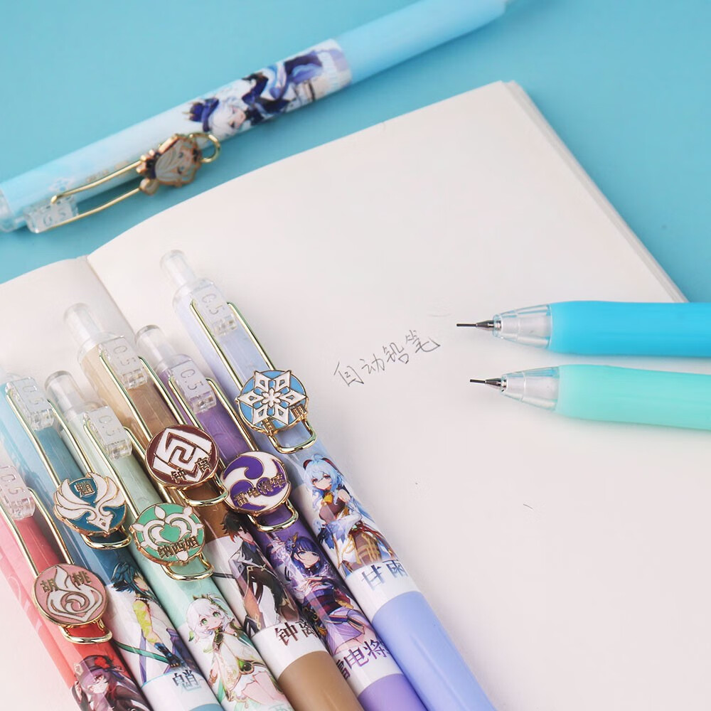 原神合金贴片自动铅笔卡通动漫游戏限定0.5高颜值学生用活动铅笔 原神3349自动铅笔1支随机 原套餐