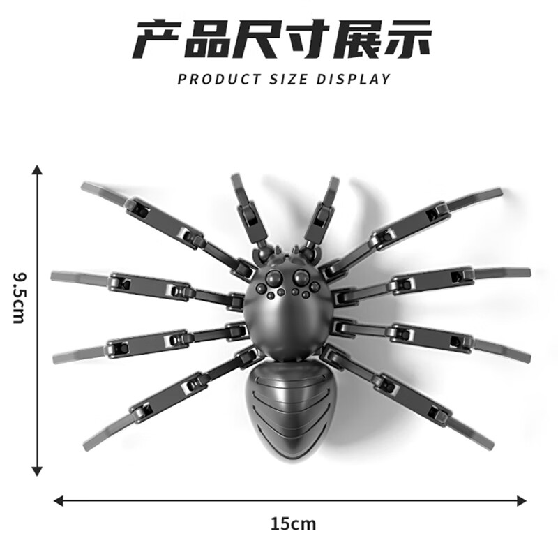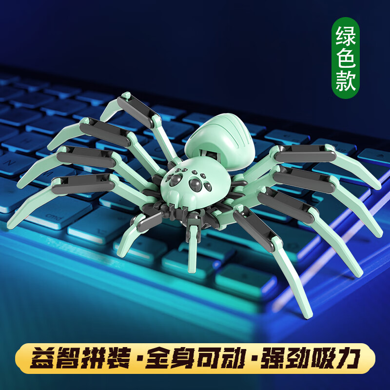 佳依乐3D打印蜘蛛玩具多关节可动DIY益y智拼装积木仿真动物昆虫造景摆的 绿色拼装机械蜘蛛15cm