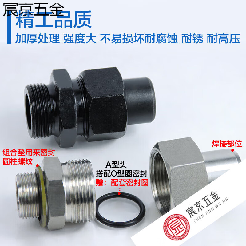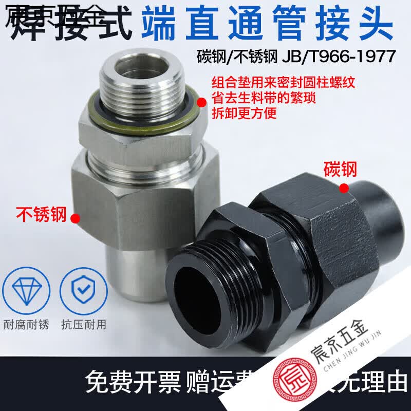 梦茜儿液压焊接式英制管接头碳钢不锈钢直通管接头JB/T966高压活接接的 碳钢G1/8-焊接8