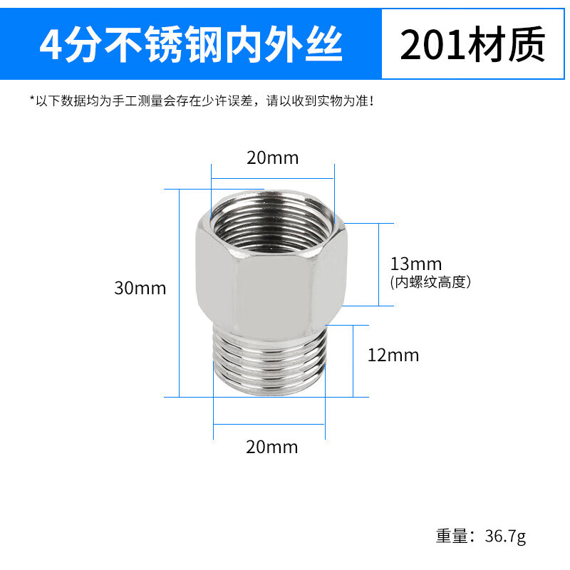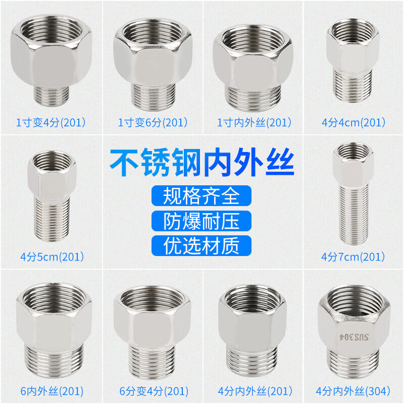 梦茜儿不锈钢内外丝直接内丝接头加厚加长6分转4分变径头水龙头水管配的 4分内外丝直接