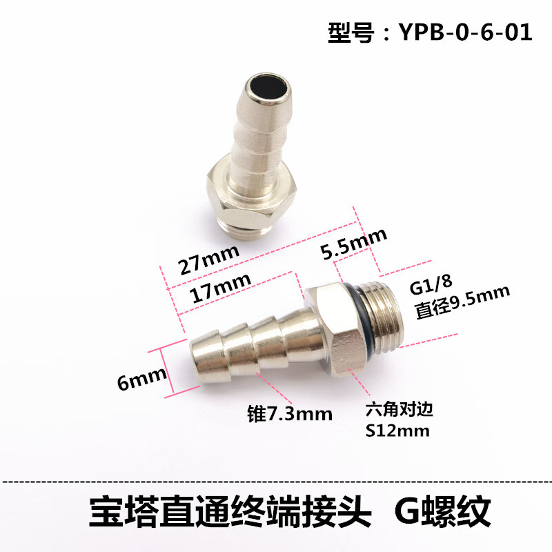 优依思宝塔直通接头YPB终端竹节卡管外螺纹水管煤气管旋转接头G螺纹带的 YPB-0-6-01带0圈