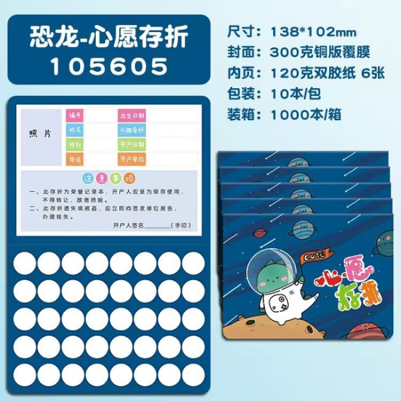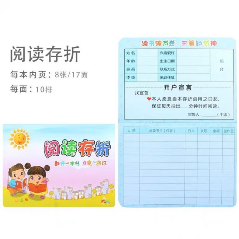 小学生阅读存折卡通少儿存折儿童银行计划表心愿班存折记账本册的的 蓝色存折 一本体验装