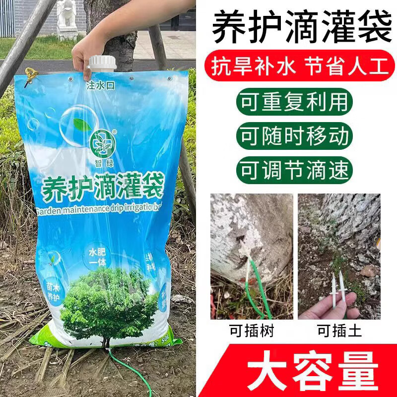 绿化滴灌袋浇水袋可移动大树营养液空袋子树木专用抗旱微灌保湿的 滴灌袋1L含滴灌管