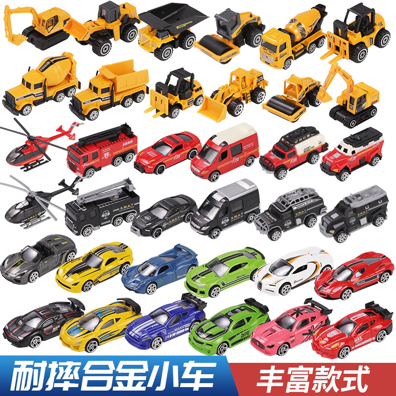 佳依乐儿童合金玩具车模型惯性滑行消防车特警车越野车赛车男孩宝宝礼的 铁质小车3只套装 回力车