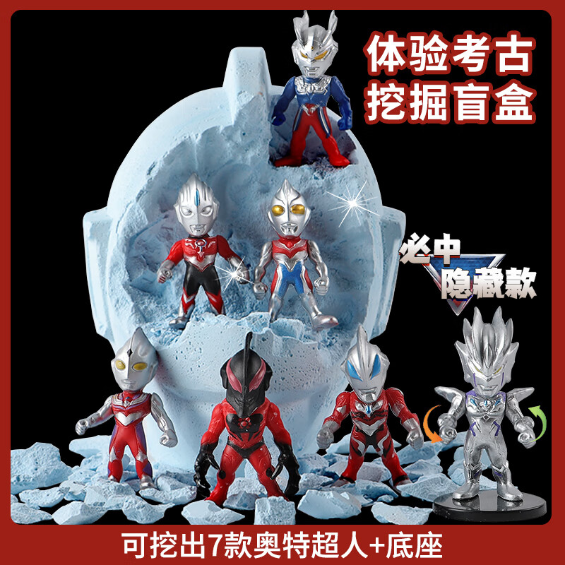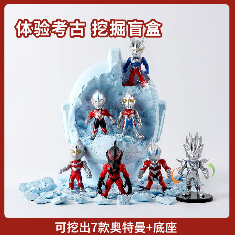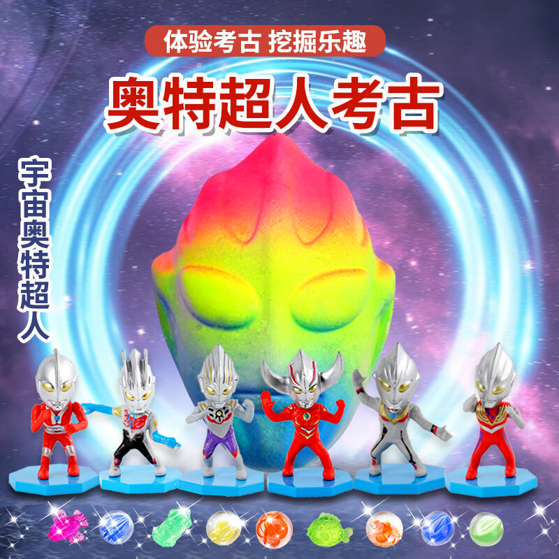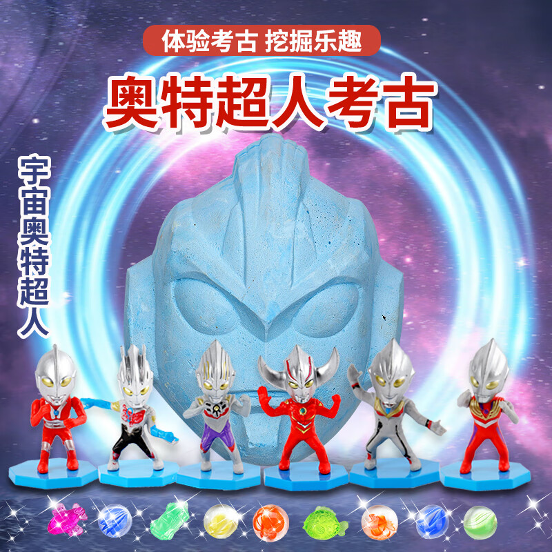 考古挖掘玩具恐龙化石挖宝石盲盒奥特儿童幼儿园敲砸石膏的 考古挖掘工具3件套