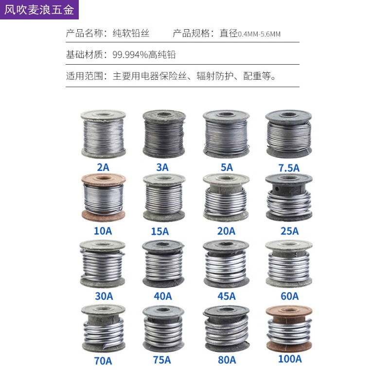 家用保险丝电表老式闸刀开关保险铅丝30A熔断丝空调3a5电闸铅条的 2A(0.4mm)