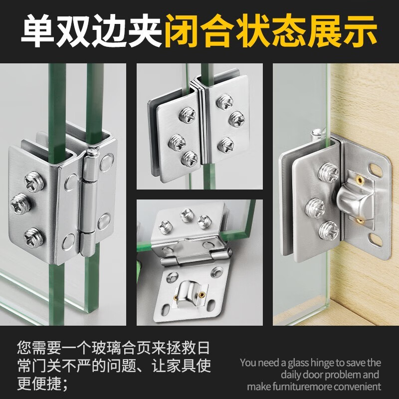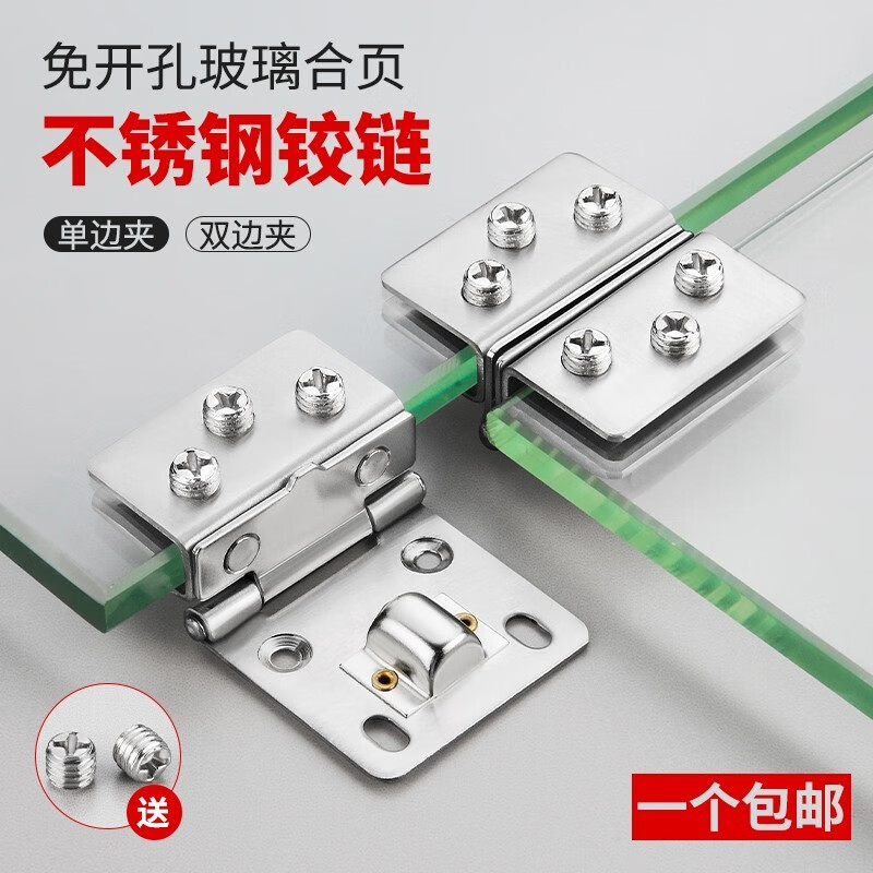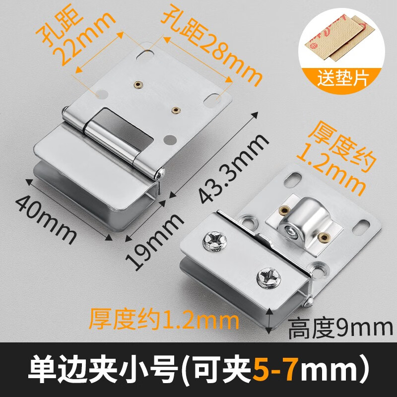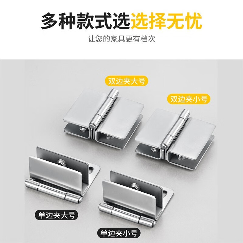 梦茜儿(MEXEMINA)不锈钢玻璃合页玻璃柜铰链玻璃门夹 酒柜门合页 鱼缸玻璃盖合页的 小号单边夹5-7mm1只价