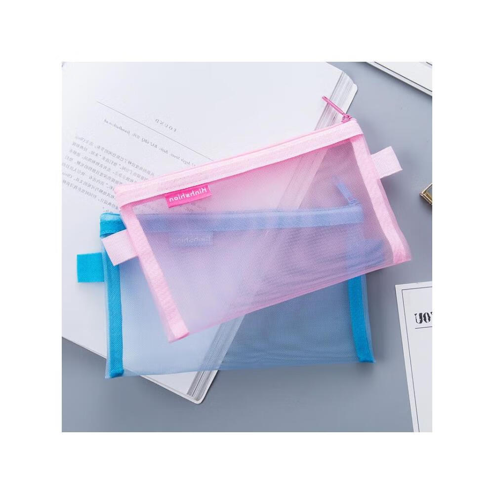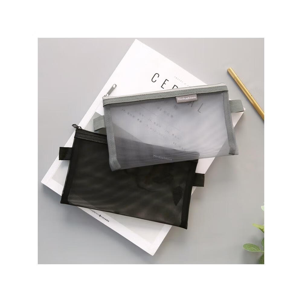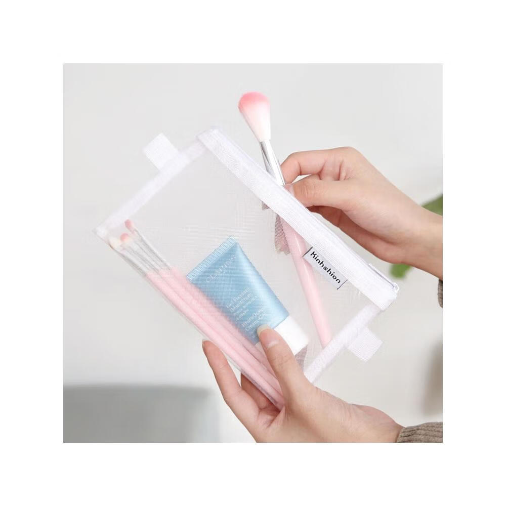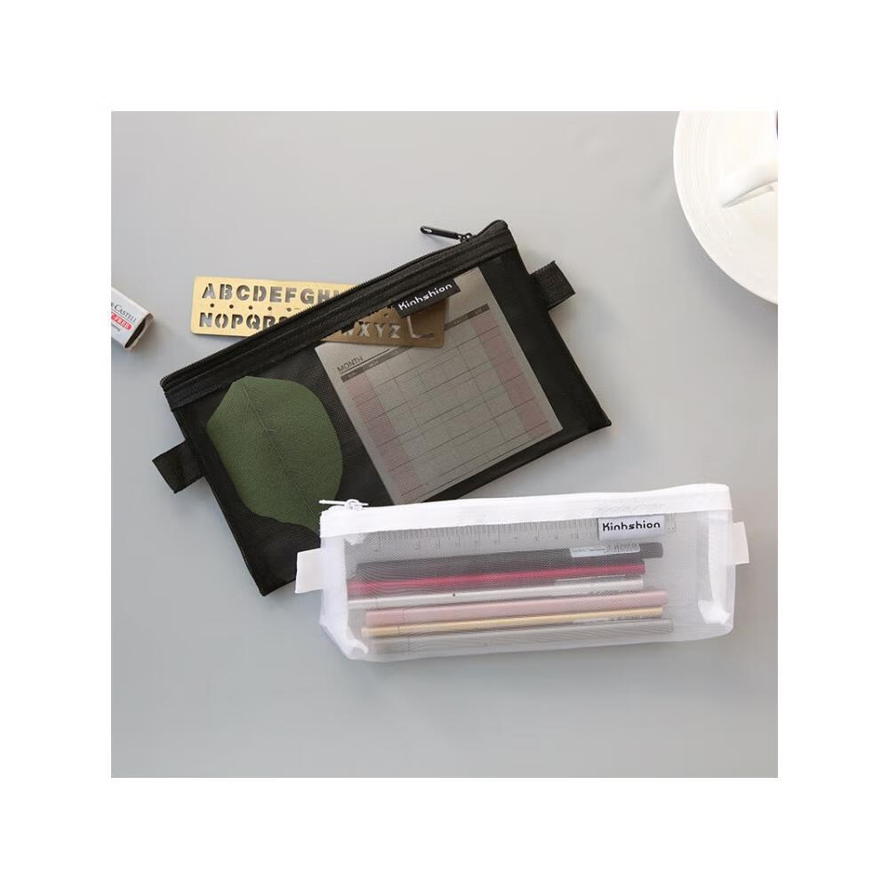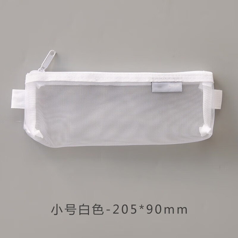 萌念版简约小清新透明网纱创意考试笔袋大容量文具盒男女生铅笔盒 尼龙笔袋的 小号-白色