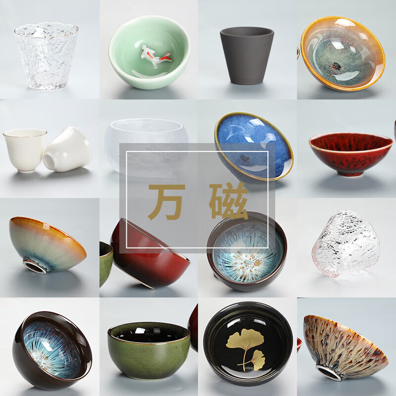萌依儿品茗杯陶瓷复古小茶杯单个中式茶盏个人专用主人单杯茶具茶杯的 紫砂茶杯直杯黑 200mL以下