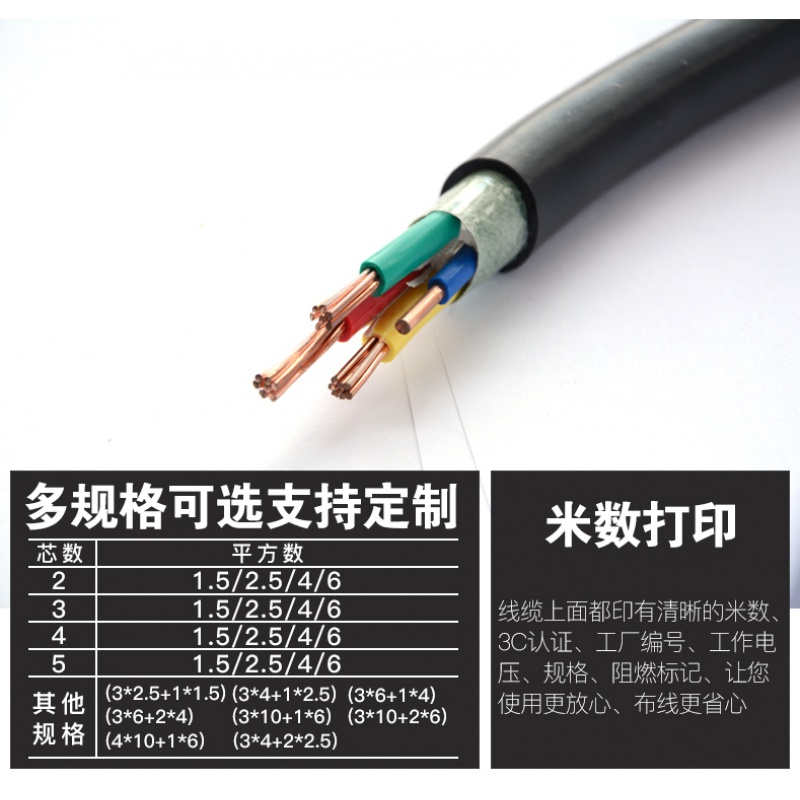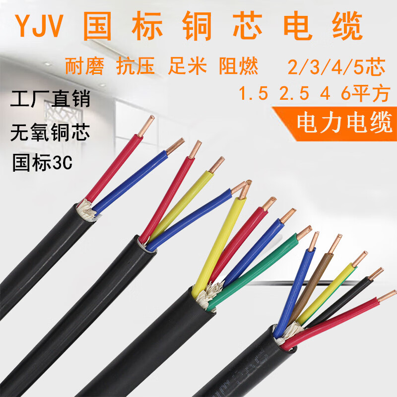 6平方铜芯电线 国标铜芯低压电缆线YJV2 3 4 5芯1.5 2.5 4 6平的 2X1.5平方