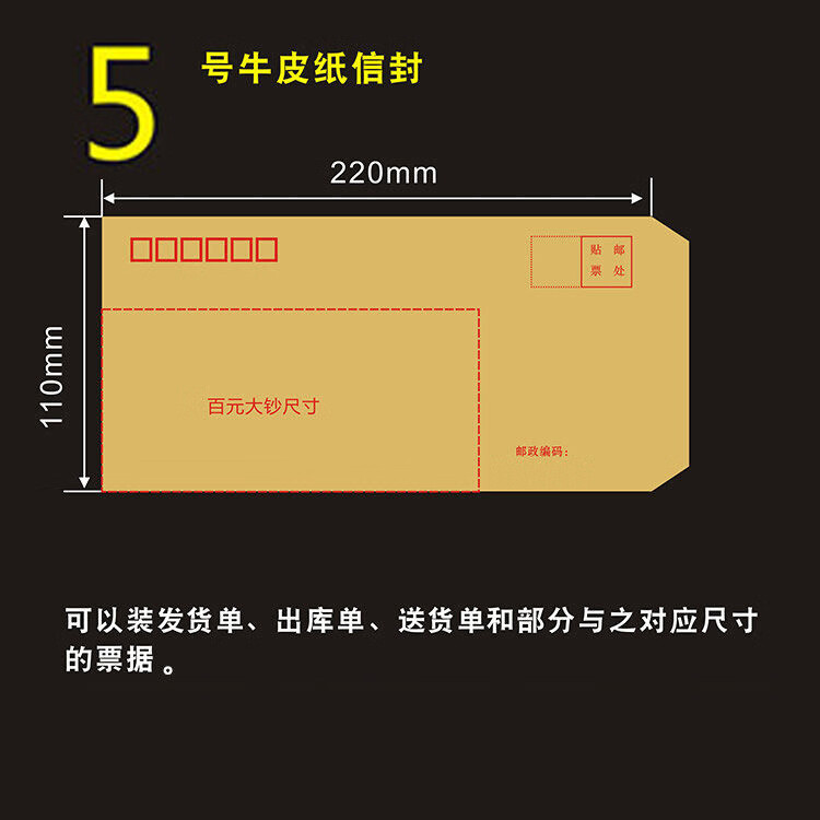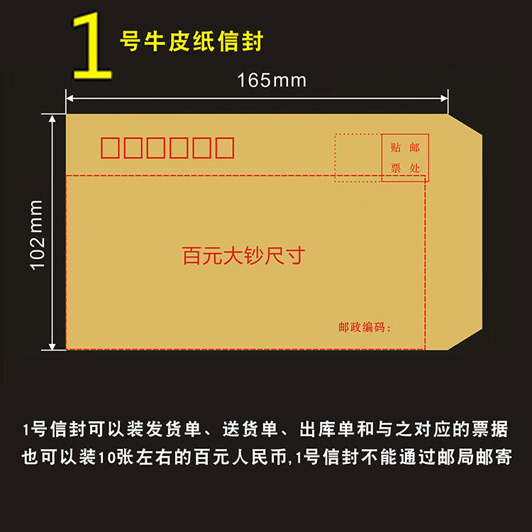 常规牛皮纸信封简约复古邮局标准黄色信封增值税发票用信封A4大号的 1号牛皮信封165*102-mm 20-个装