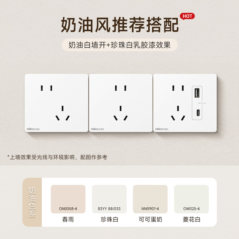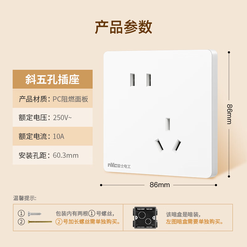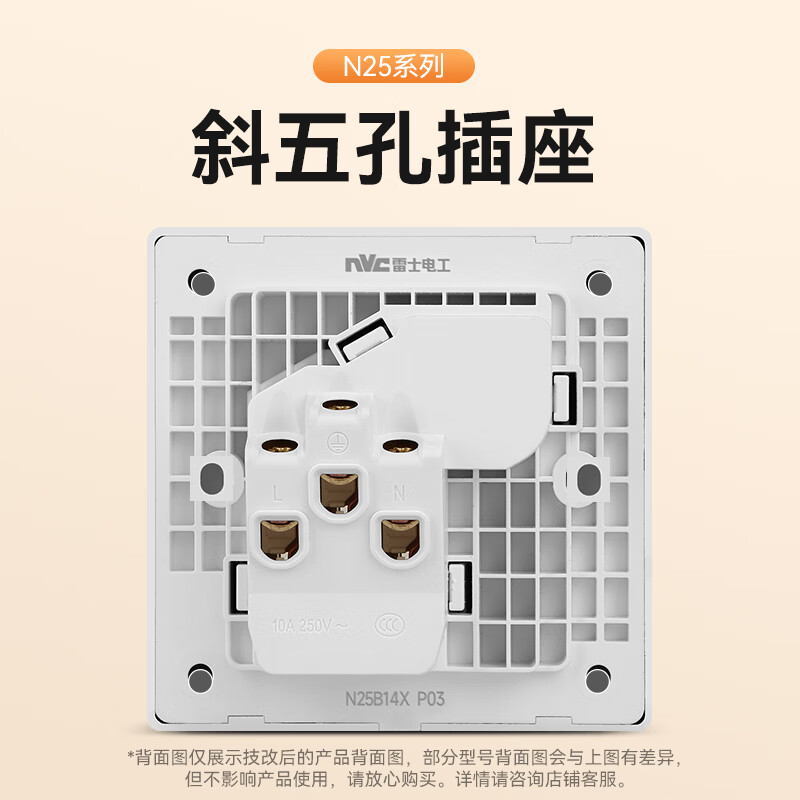 NVC雷士电工 开关插座 10a斜五孔插座 86型暗装插座面板 N25奶油白