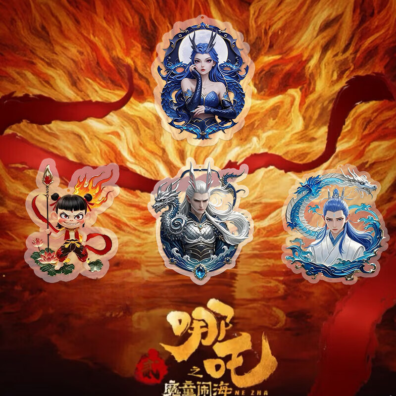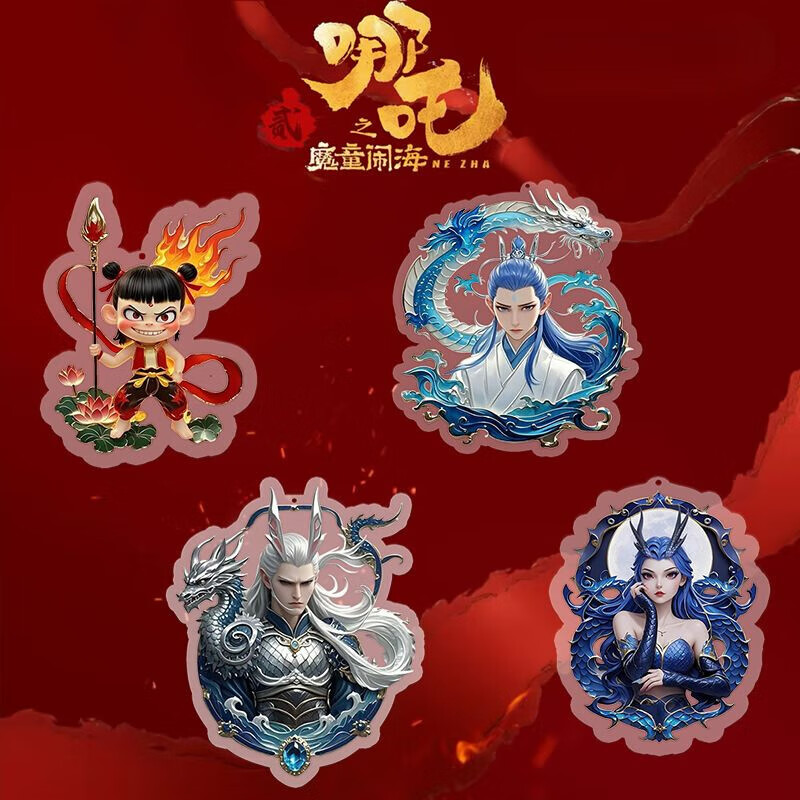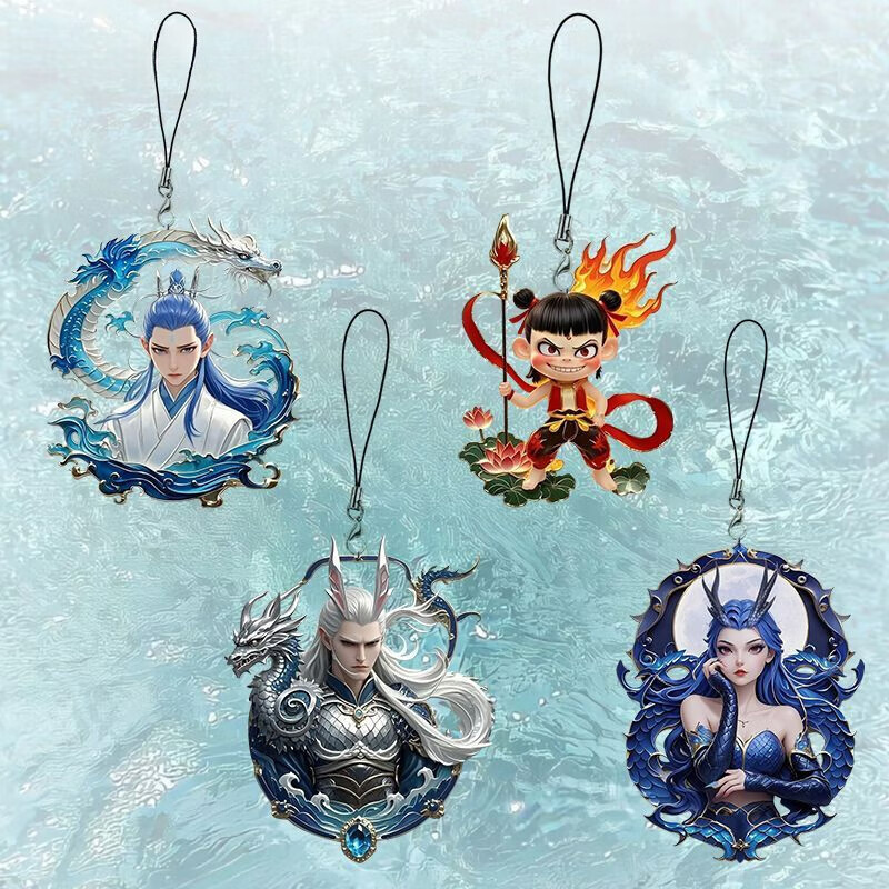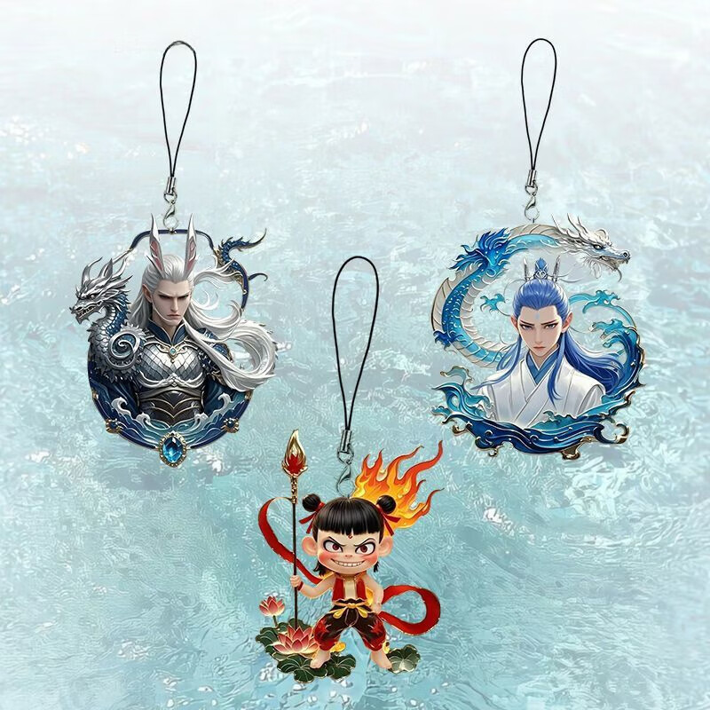 新款哪吒2魔童闹海周边高颜值Q版手机链藕饼敖丙饼渣小挂件的 全4条/每条1个哪吒+敖丙+敖光+ 亚克力平面挂饰