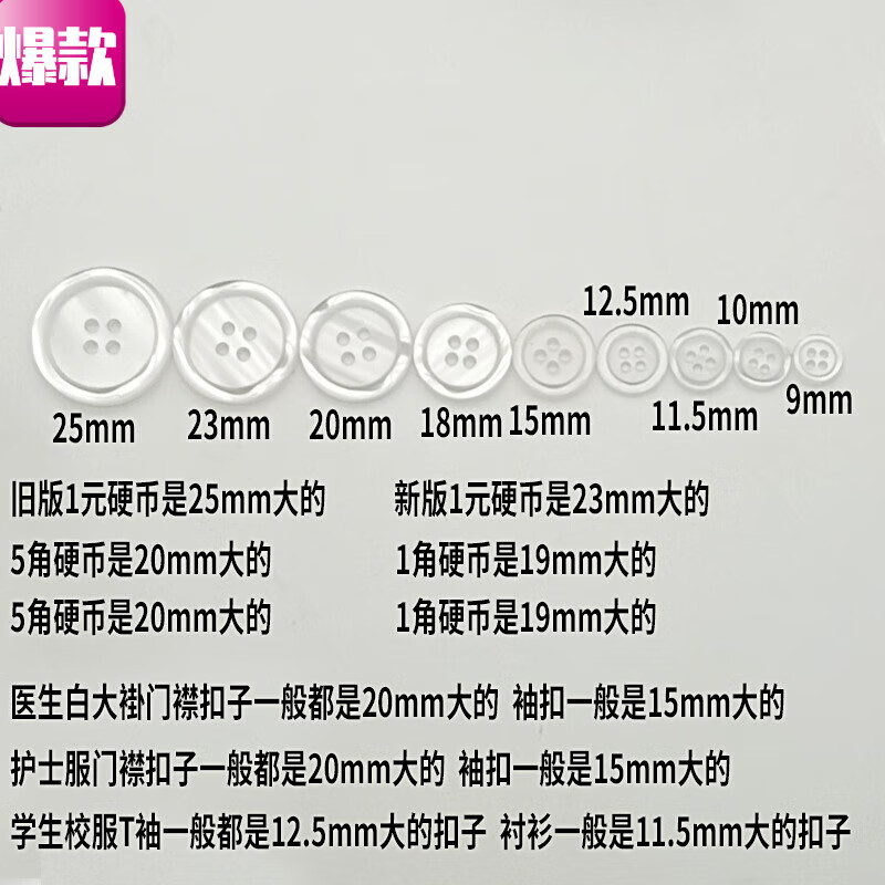 衬衫小扣子 珠光扣子衬衫T袖校服钮扣白大褂护士服纽扣树脂西装的 四眼宽边珠光 9mm 0个