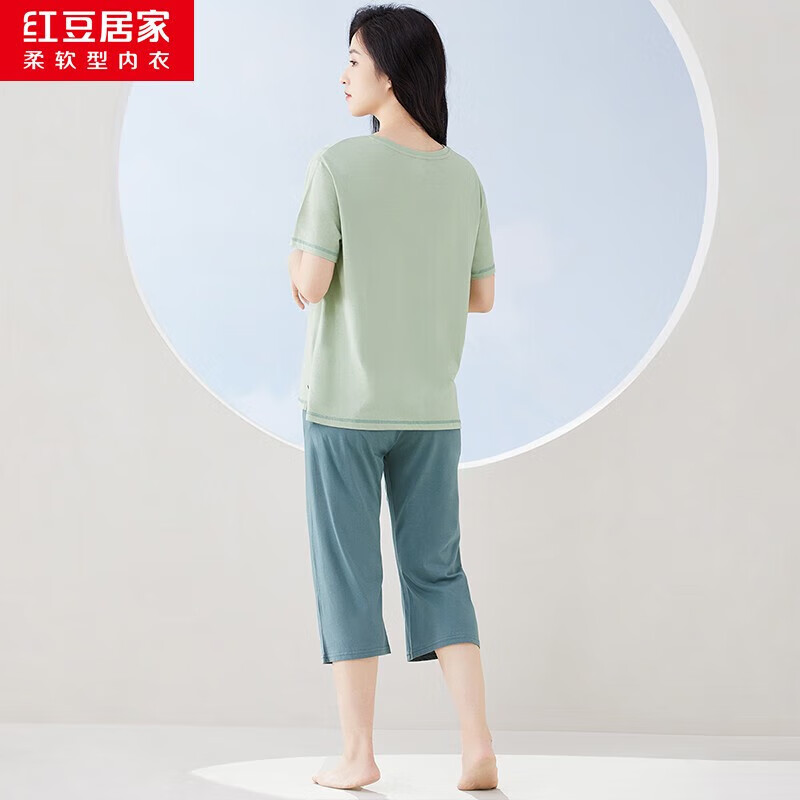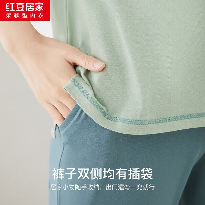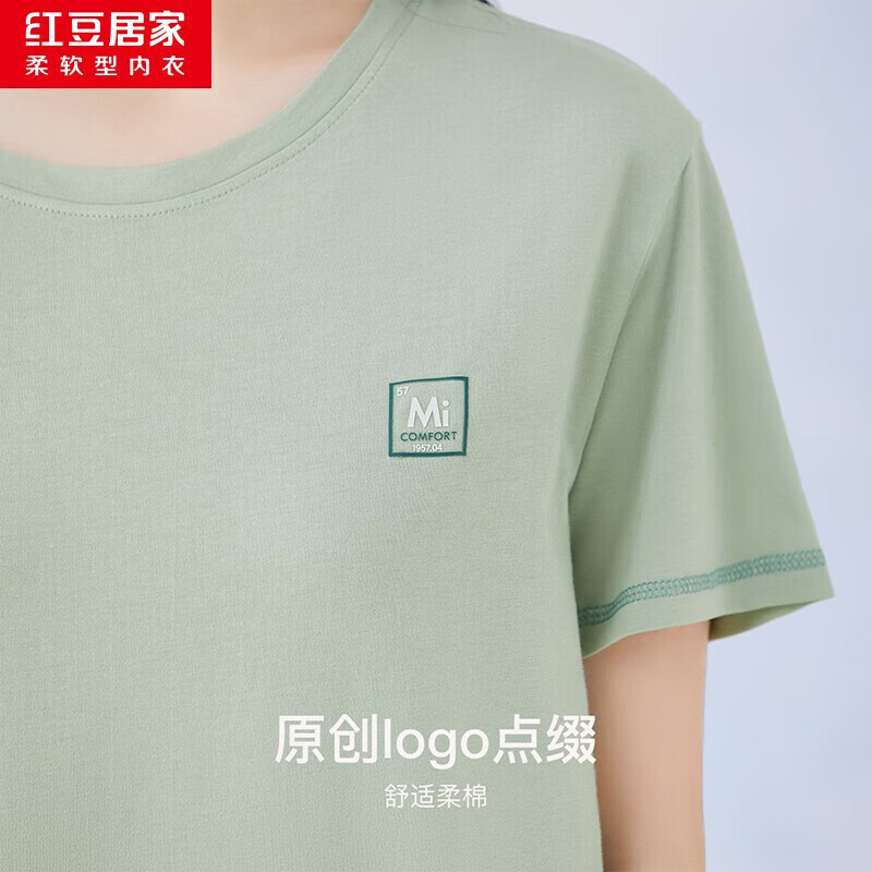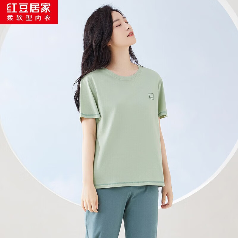 红豆居家(Hodohome)情侣全棉睡衣简约休闲风短袖家居服套装可外穿 女款绿色 S 160/84A