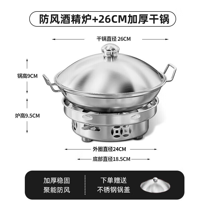 语森忆固体酒精炉子小火锅商用家用干锅锅具户外便携专用小锅仔锅灯炉的 防风酒精炉防风聚能 24cm