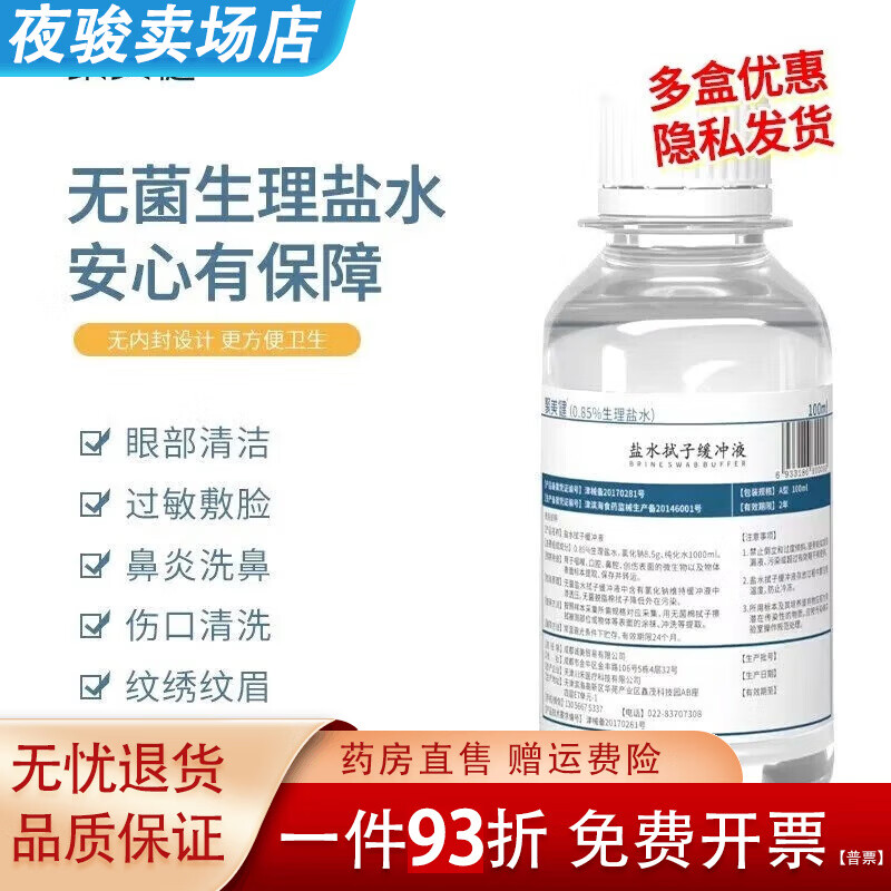 通用生理盐水敷脸 盐水拭子缓冲液100ml生理盐医用敷脸清洁脸部细 1瓶[体验装]